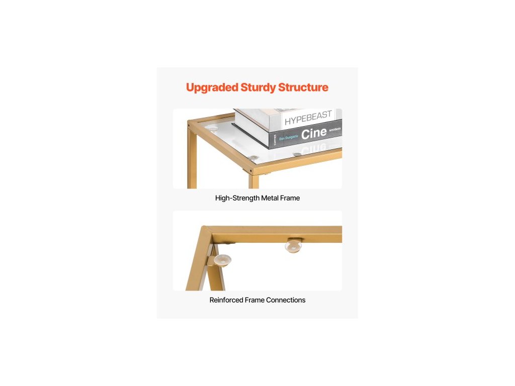 Konzolový stolek se 2 úrovněmi ze skla, moderní obdélníkový odkládací stolek k pohovce s deskou z tvrzeného skla a železnými nohami, zlatý konzolový stůl s pojistkou proti převrácení do obývacího pokoje, chodby, vstupní haly, předsíně, zlatý