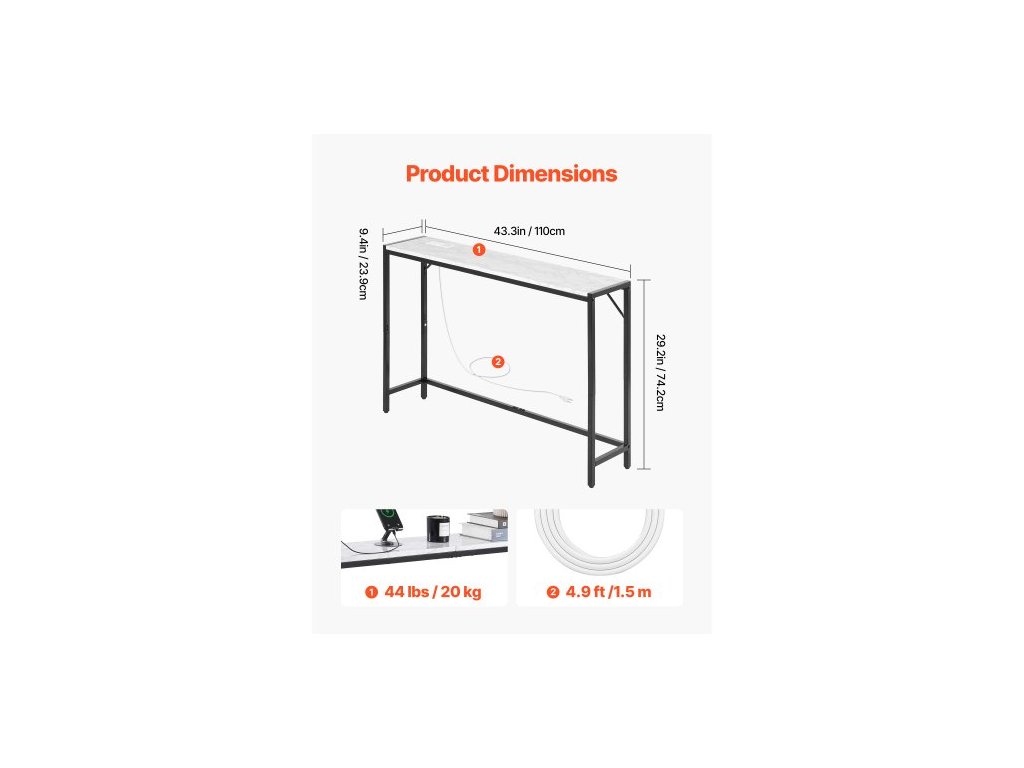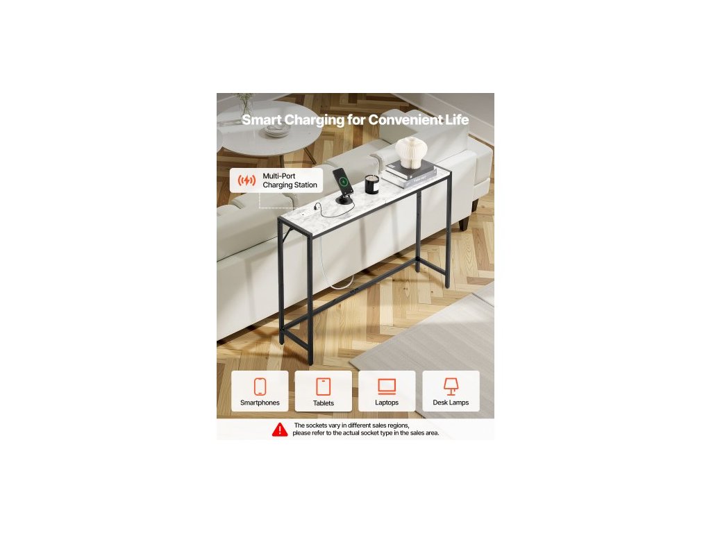 Konzolový stolek z mramoru, moderní úzký dlouhý konzolový stolek se zásuvkou, tenký odkládací stolek k pohovce s železnými trubkami, pojistkou proti převrácení a trojúhelníkovou oporou pro obývací pokoj, chodbu, vstupní halu, předsíň