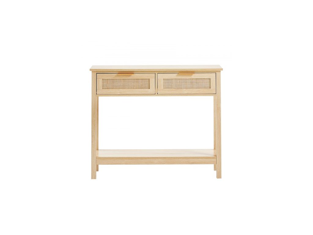Konzolový stolek z ratanu se 2 úložnými zásuvkami, ratanový předsíňový stolek s posuvnými dveřmi z přírodního ratanu, konzolový stolek s rozkládací pohovkou do obývacího pokoje, pracovny, předsíně nebo televizní stěny, přírodní