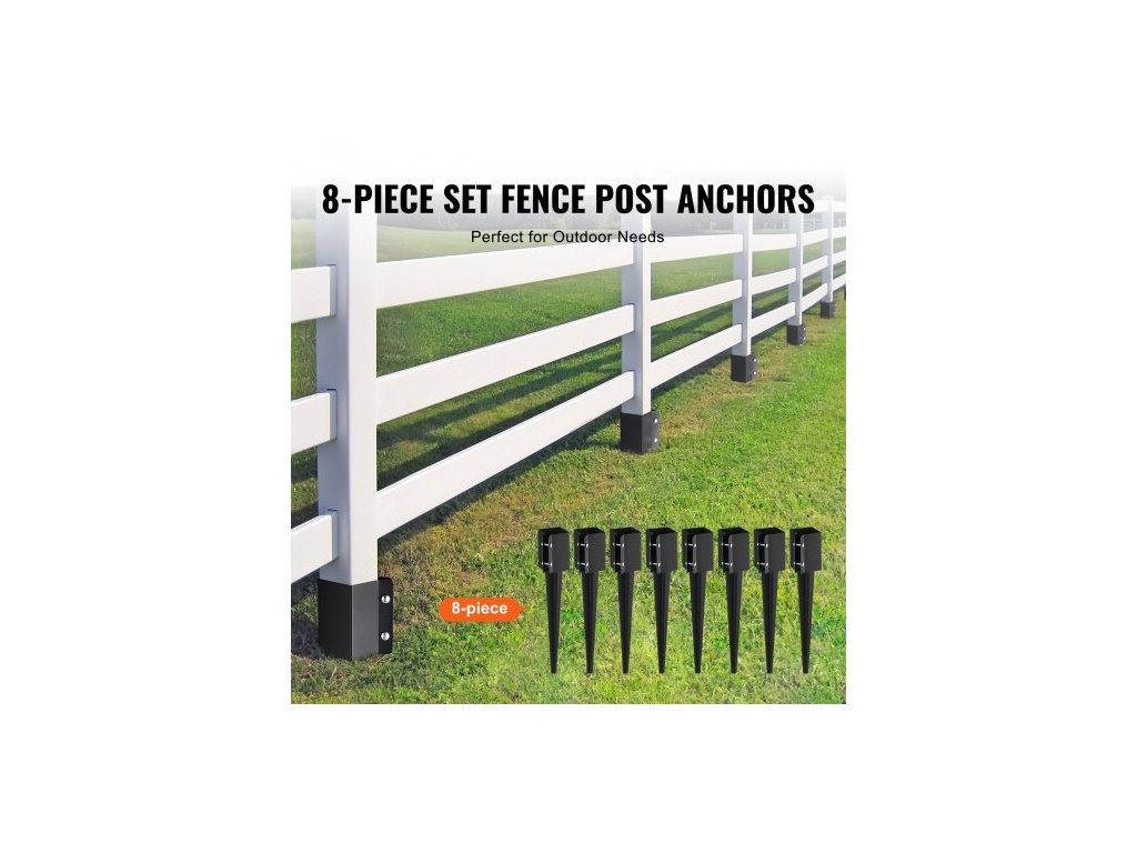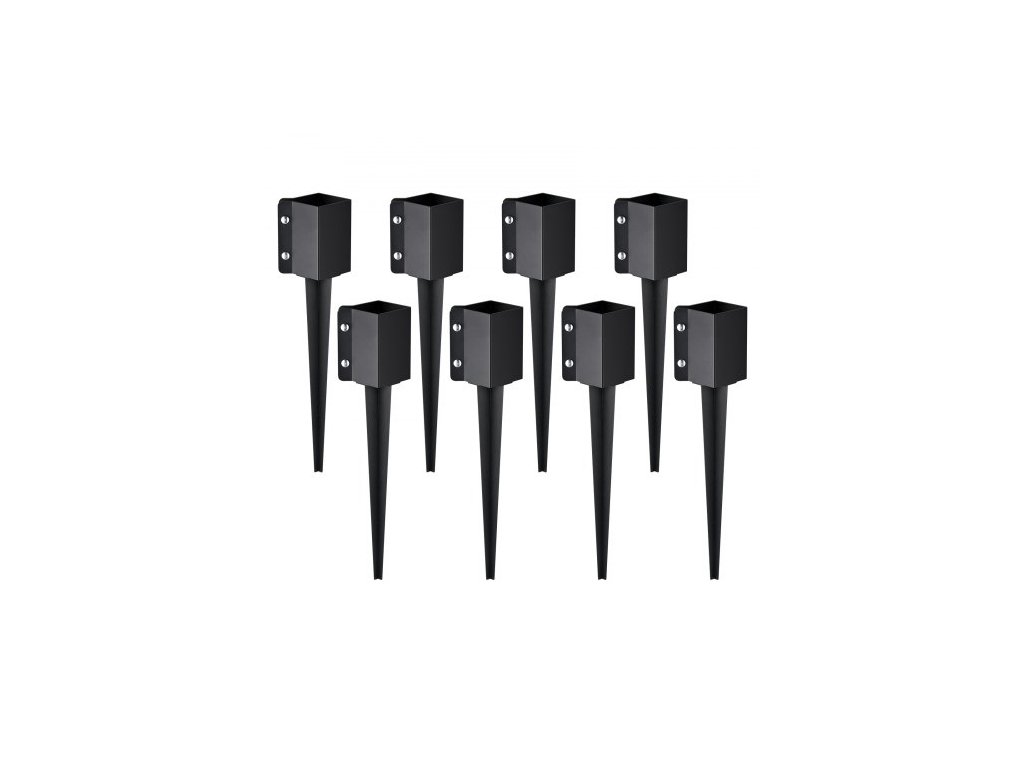 Kotevní zemní kolík na plotové sloupky, balení 8 kusů, vnější průměr 24 x 4 x 4 palce/61 x 10,2 x 10,2 cm (vnitřní průměr 3,5 x 3,5 palce/8,9 x 8,9 cm), kovový zemní kolík s černým práškovým lakováním, pro zábradlí poštovní schránky na zahradní