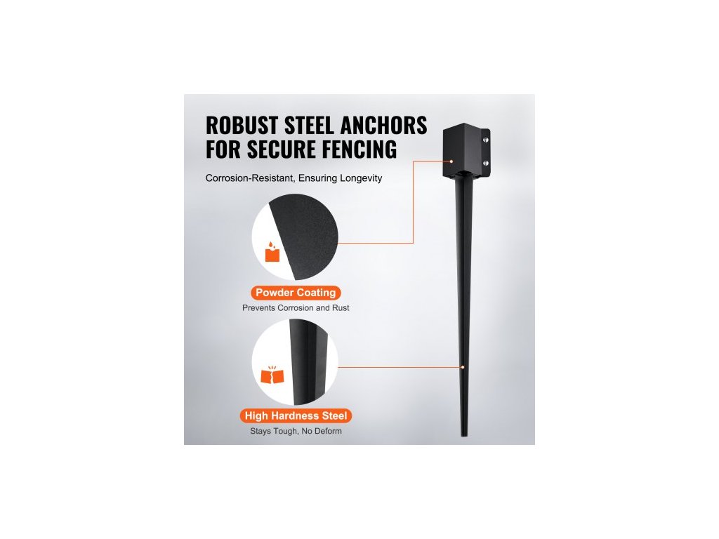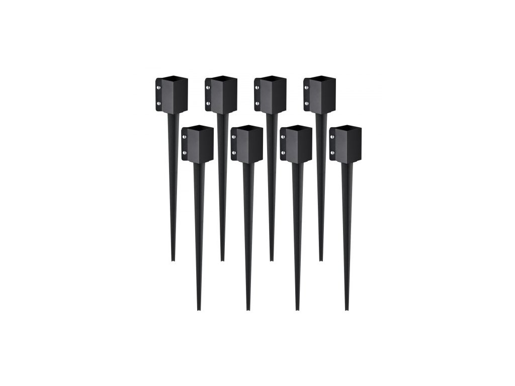 Kotevní zemní kolík na plotové sloupky, balení 8 kusů, vnější průměr 36 x 4 x 4 palce (vnitřní průměr 3,5 x 3,5 palce), kovový černý práškově lakovaný zemní kolík, pro zábradlí poštovní schránky na zahradní terasu
