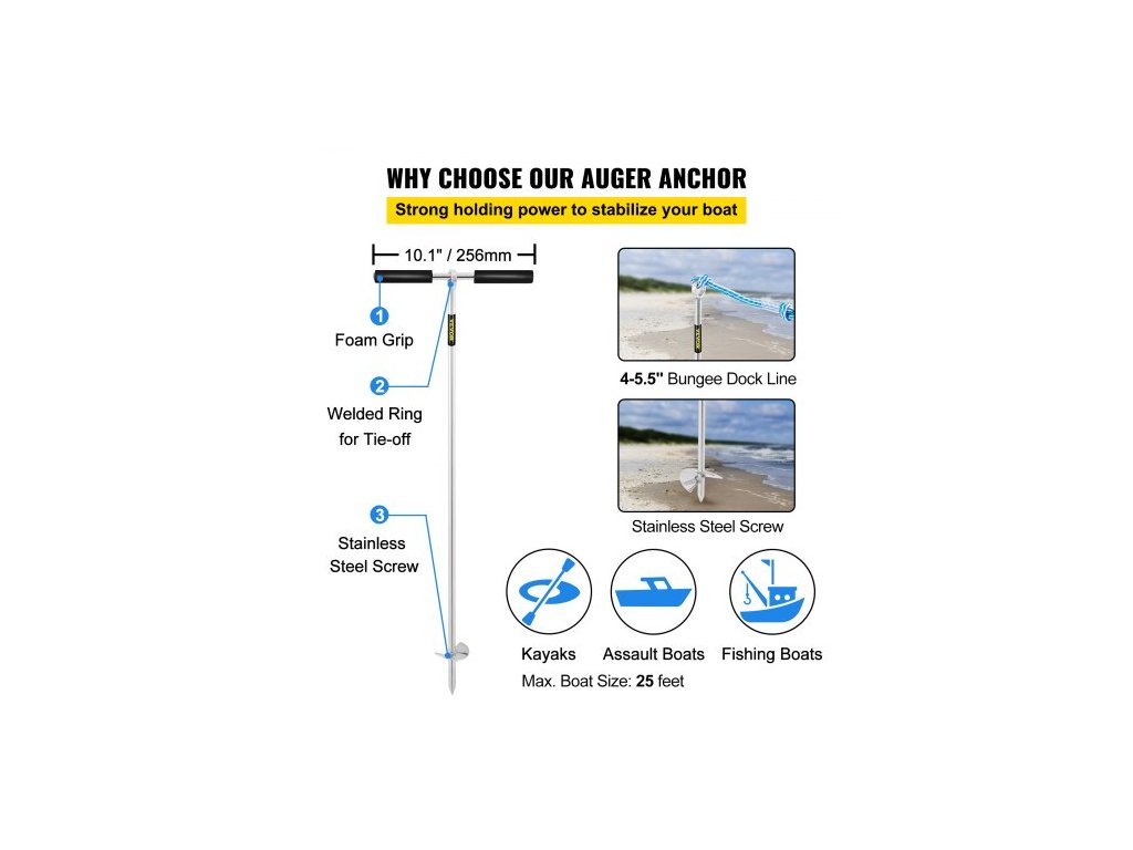 Kotva do písku , vrták o délce 36" na pláž a písečný nános, šroubovací kotva z nerezové oceli 316 s odnímatelnou rukojetí, bungee line a přepravní taškou, pro vodní skútry, vodní skútry, pontony, kajaky a vodní skútry.