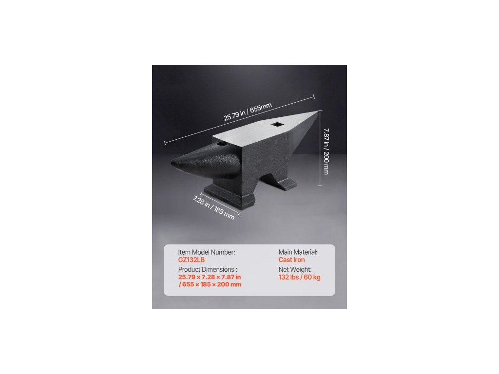 Kulatý otvor: 1,1 palce/27 mm,Model: 132BLACK,Odolný otvor: 1,38 palce/35 mm,Materiál: Tvrdá ocel,Tvrdost: 55 HRC,Hmotnost: 132 liber/60 kg,Základna: 10 x 7,3 palce/260 x 185 mm,Rozměry výrobku: 25,79 x 7,28 x 7,87 palce/655 x 185 x 200 mm