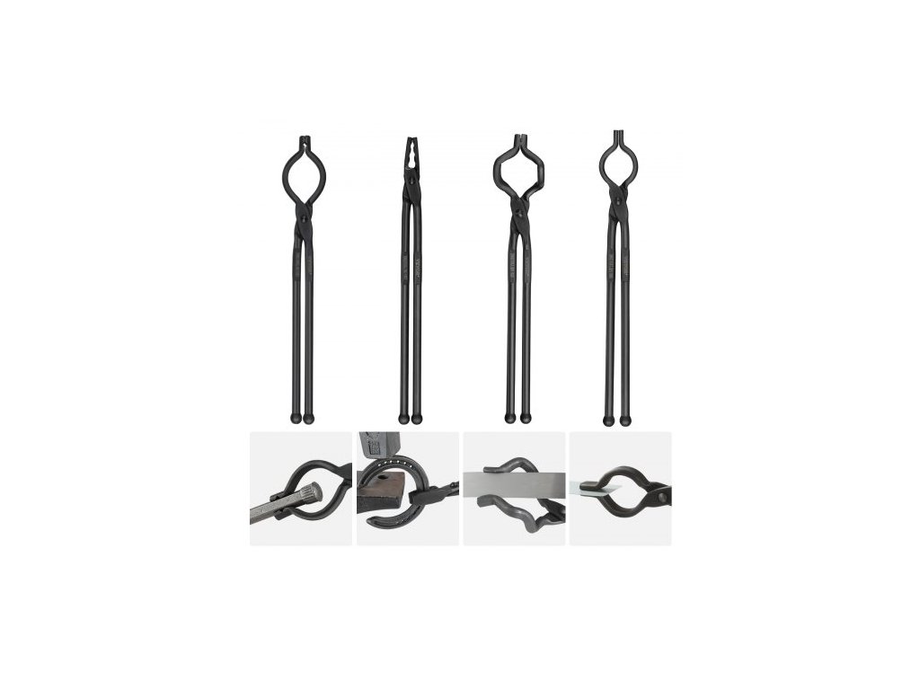 Kovářské kleště , 45,7 cm 4 ks, Kleště na šrouby s V-bitem, Kleště s čelistmi Wolf, Kleště s V-bitem a uchopovací kleště Z, Kleště z uhlíkové oceli s ocelovými nýty A3, pro začátečníky i zkušené kováře, čelistířské kováře