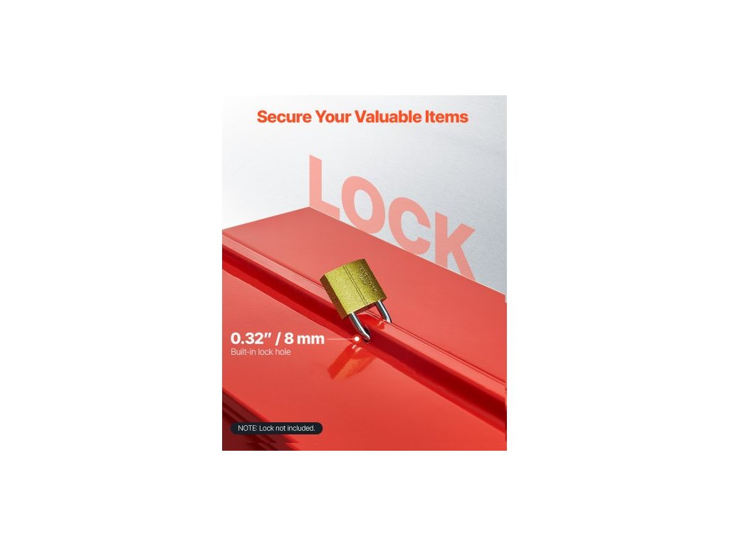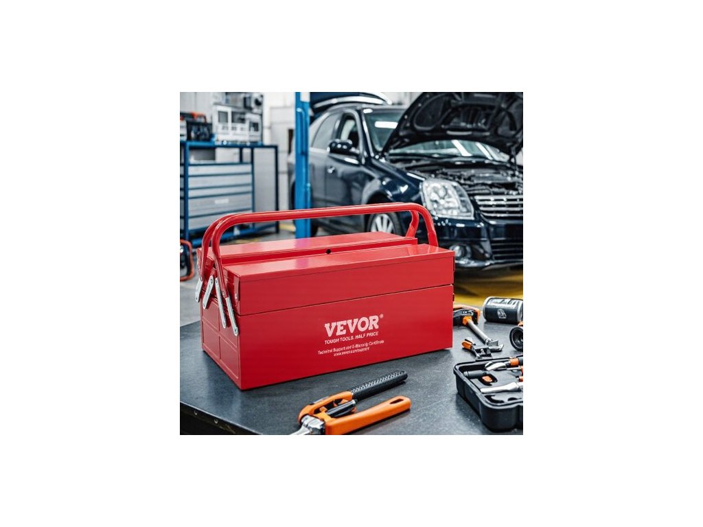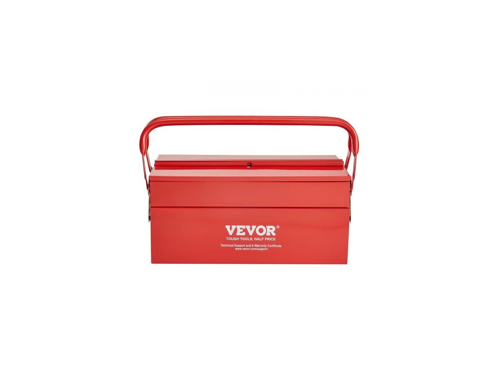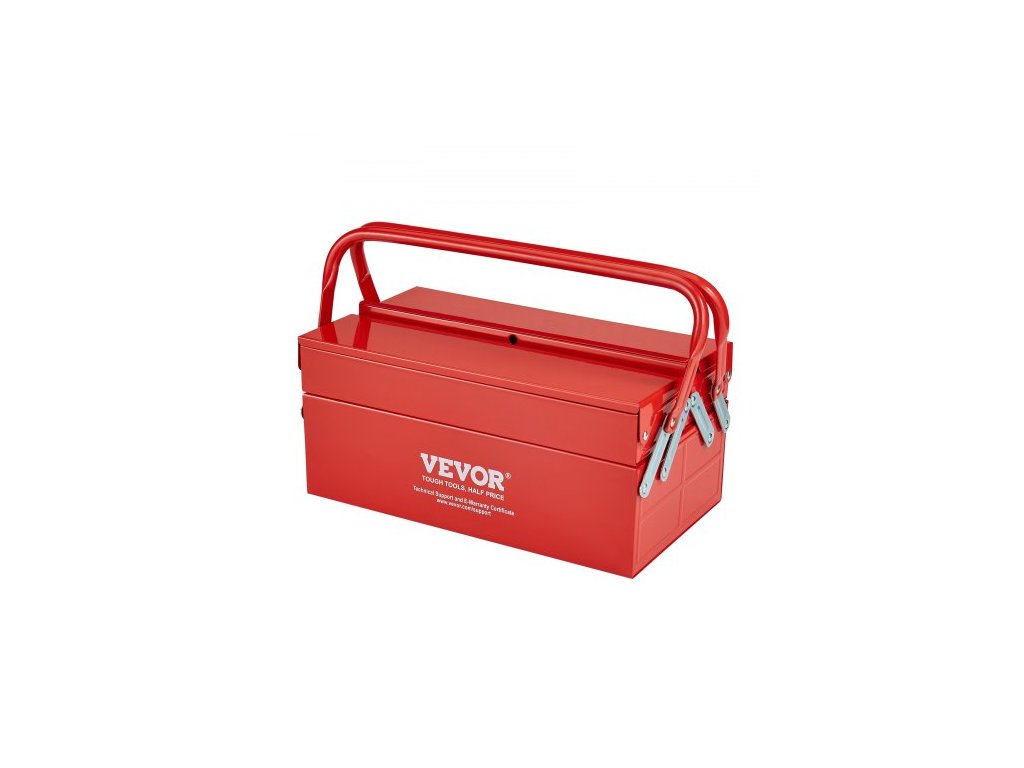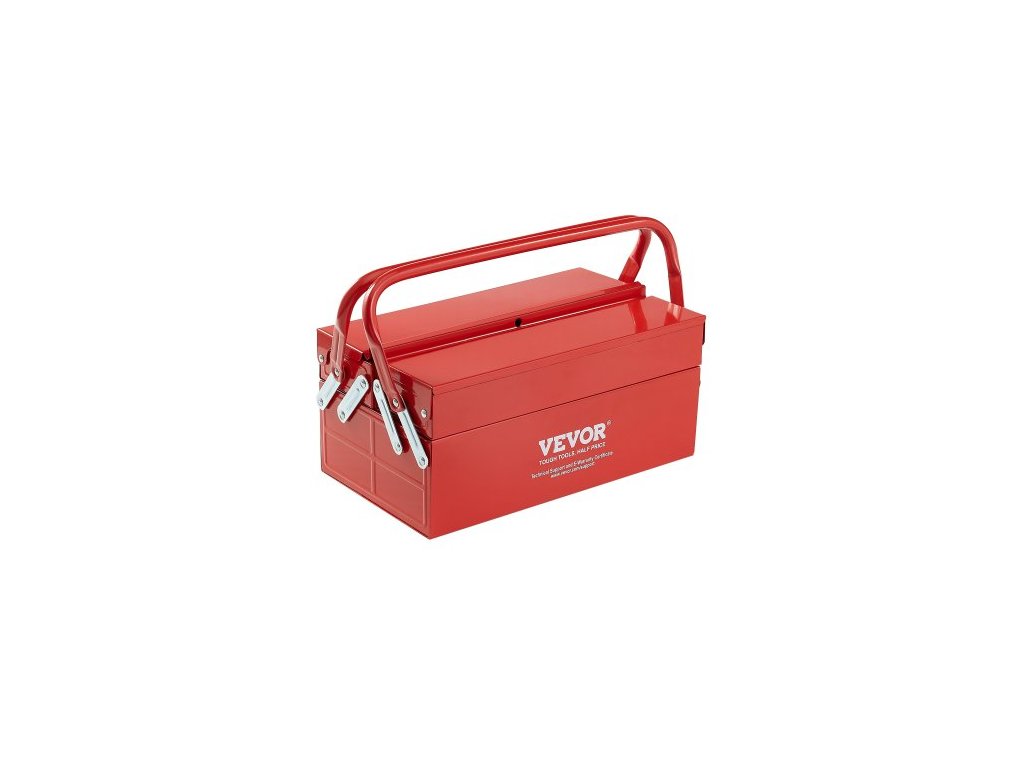 Kovová skříň na nářadí , 14palcová, 2patrová přenosná skládací skříňka na nářadí se 3 přihrádkami s rukojetí a otvorem pro zámek, práškově lakovaná ocel, konzolová skříň na nářadí pro domácí sklad, opravárnu, červená