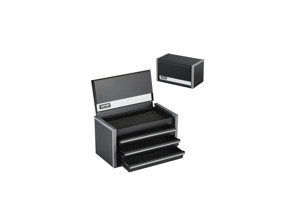 Kovová skříň na nářadí , 8,6 palce, přenosná kovová skříň na nářadí se 3 zásuvkami, malá skříň na nářadí s EVA vložkami a PP nožičkami, odolná ocel s otevíráním s kuličkovými ložisky a práškovým lakováním, černá