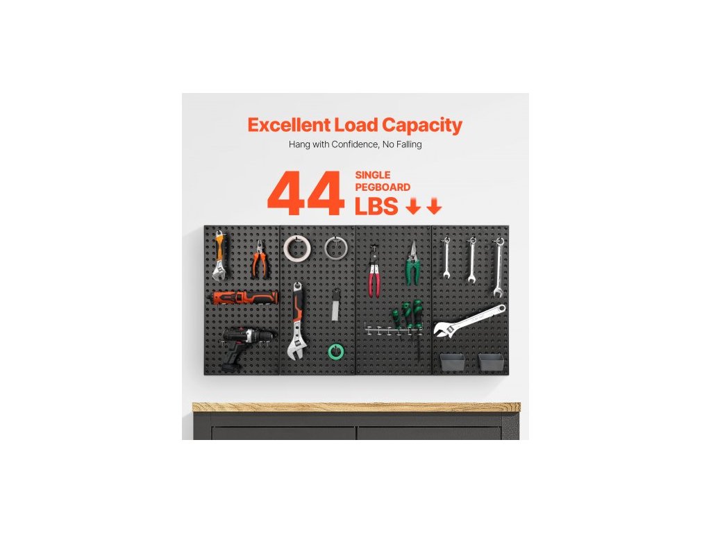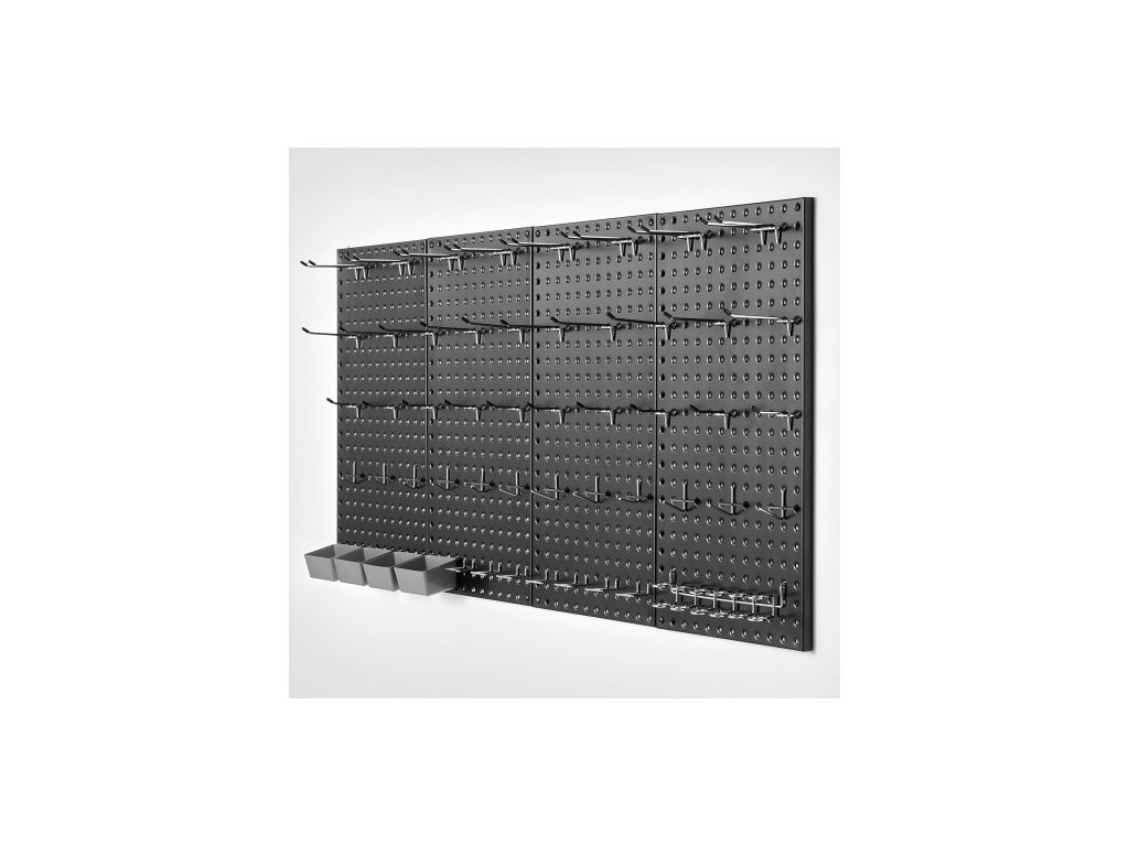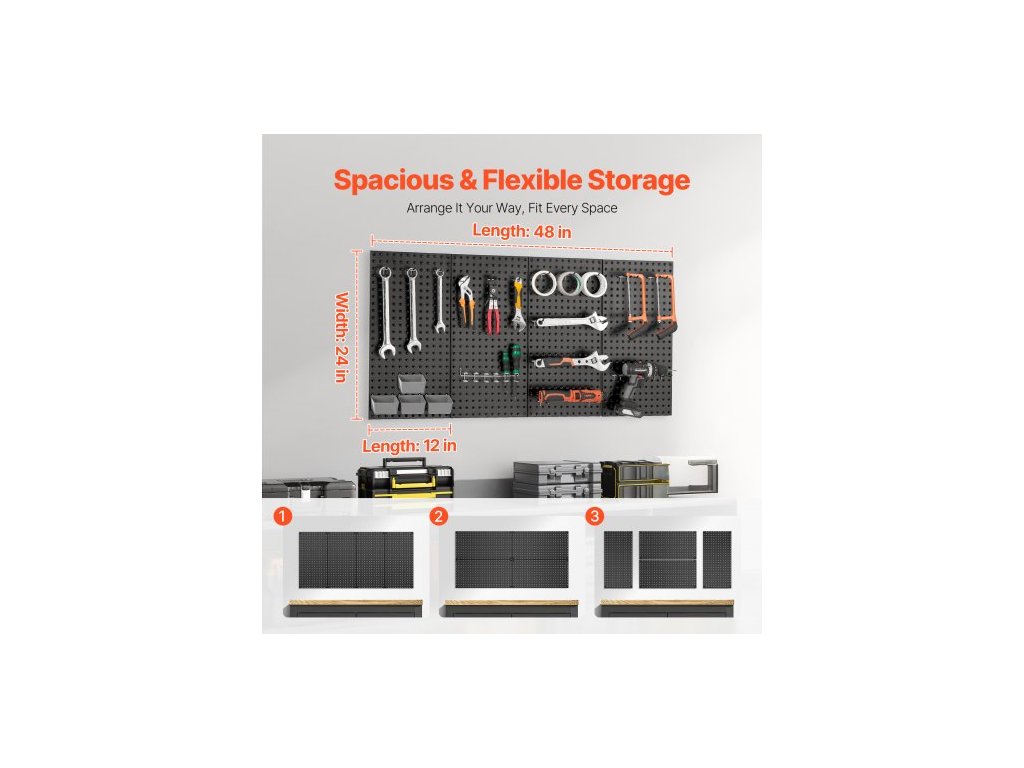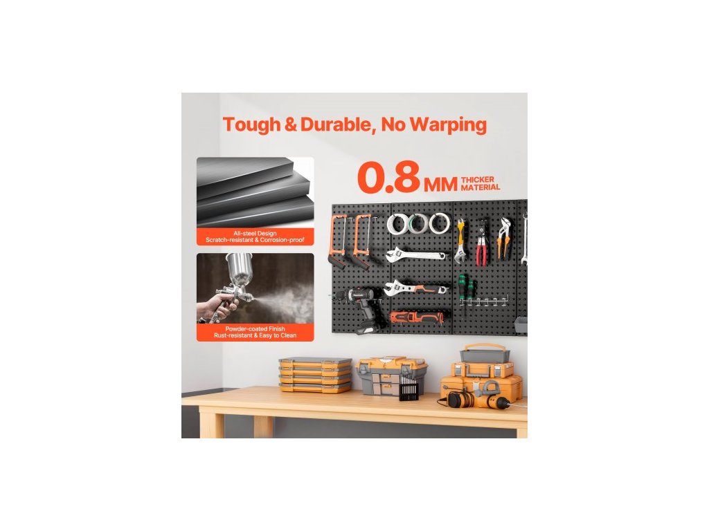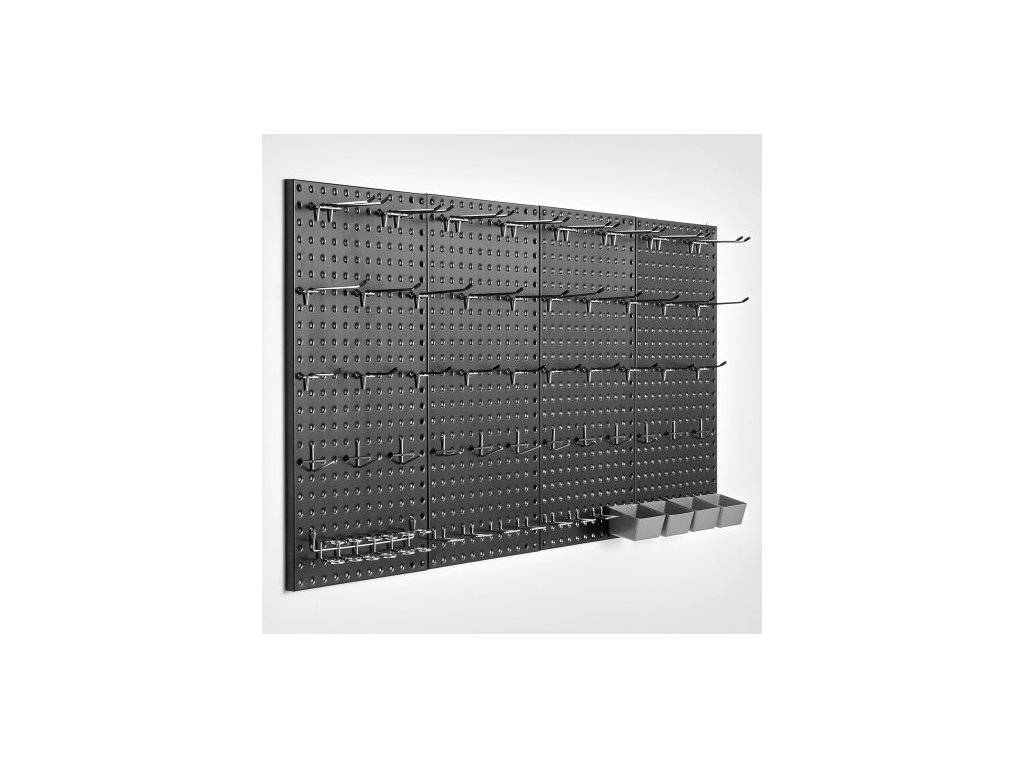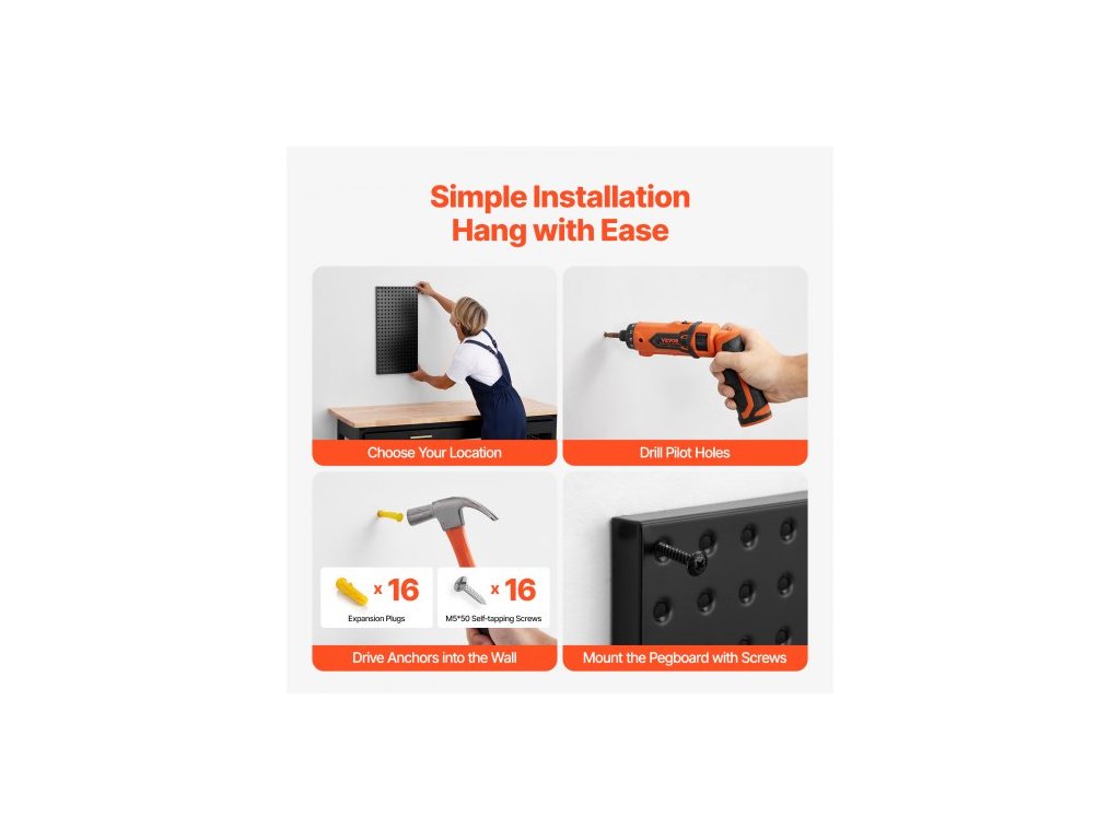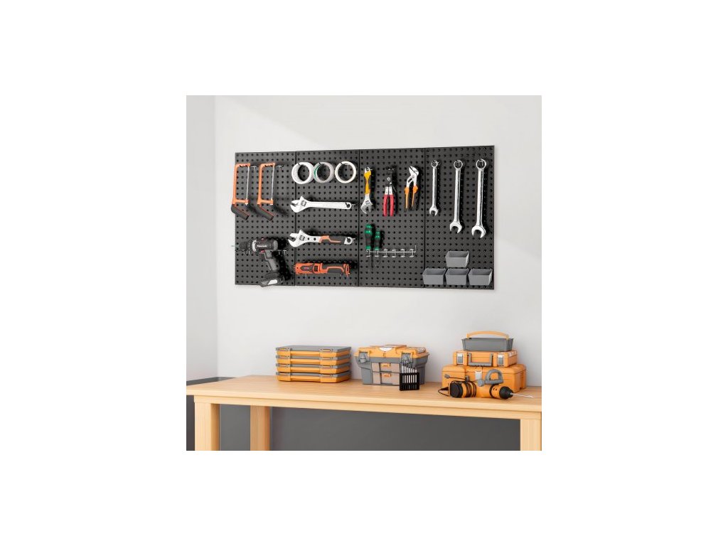 Kovové děrované desky, 24" x 12", 4 panely, odolný nástěnný organizér s kolíčkovými deskami s příslušenstvím, do obývacího pokoje, garáže, úložného prostoru na nářadí, kanceláře, organizace řemesel, kuchyně, domů, černé