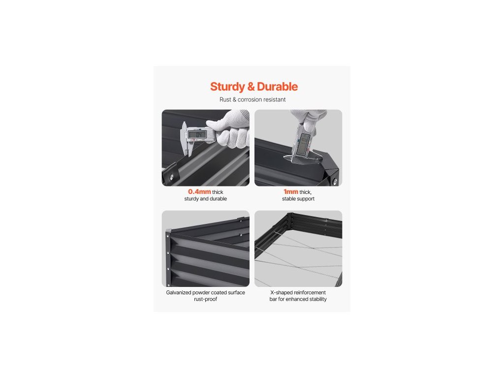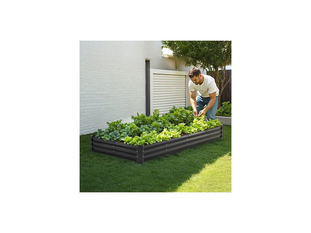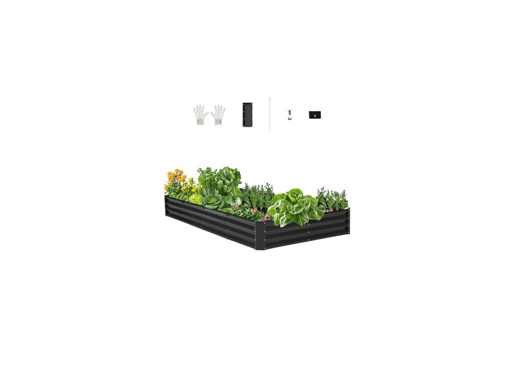 Vyvýšený kovový záhon , venkovní pozinkovaný květináč 8 x 4 x 1 stopy, s otevřeným dnem, velký vyvýšený záhon pro pěstování zeleniny, květin, bylin a sukulentů, tmavě šedý