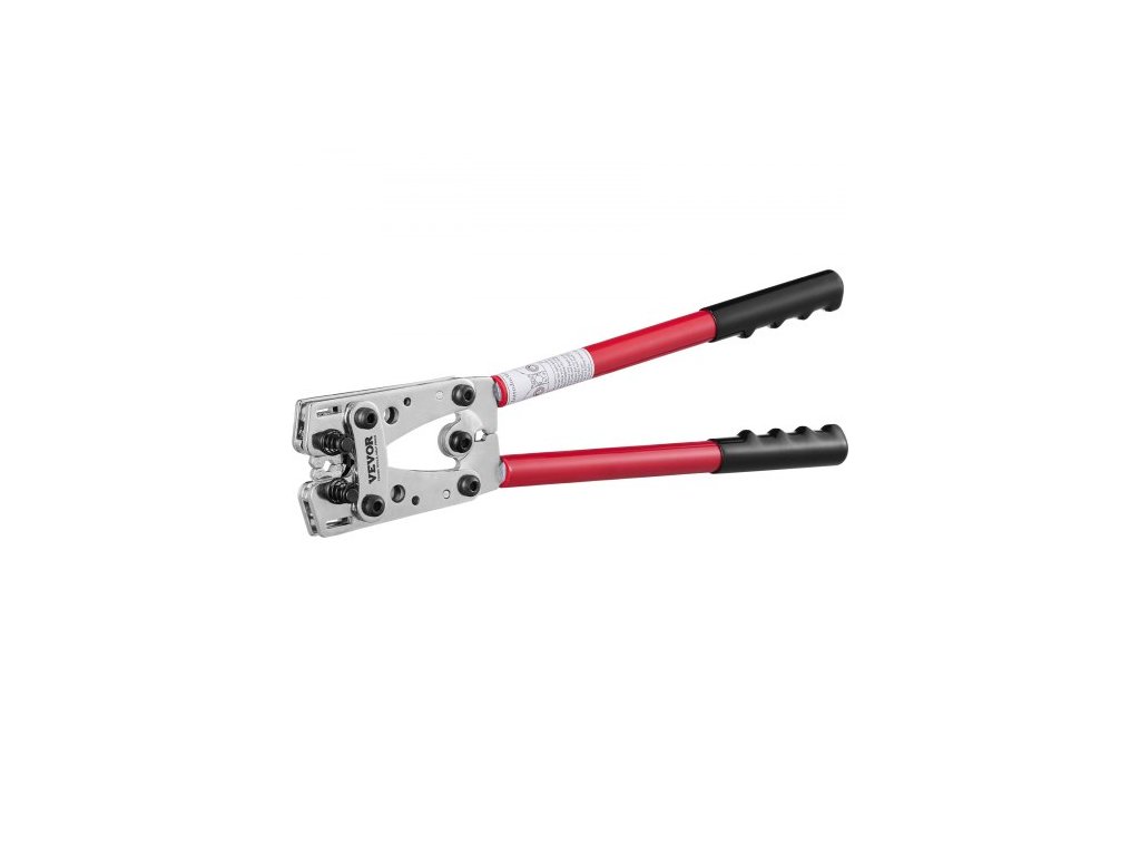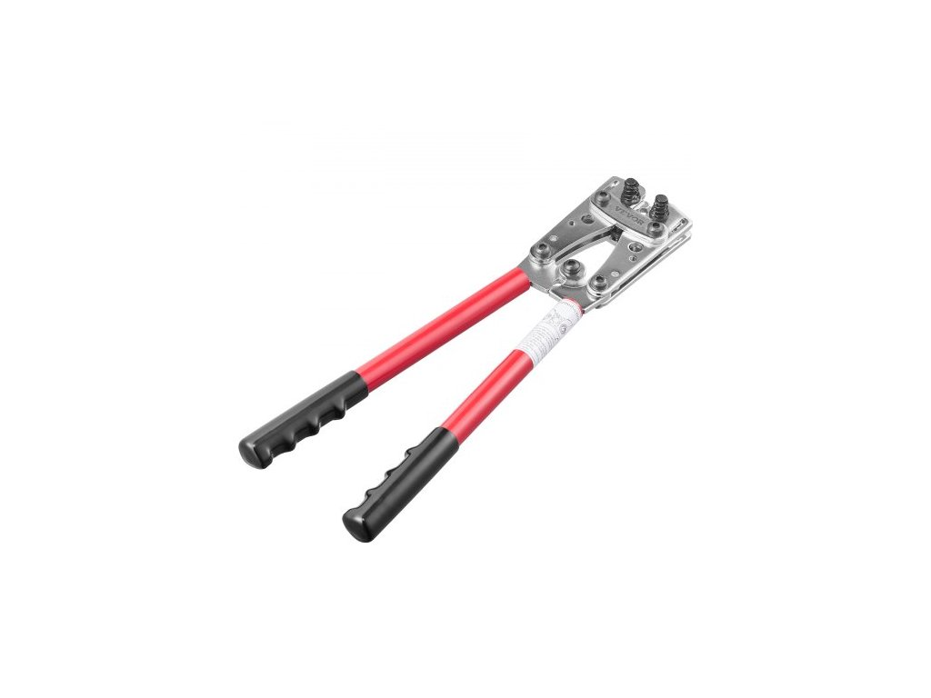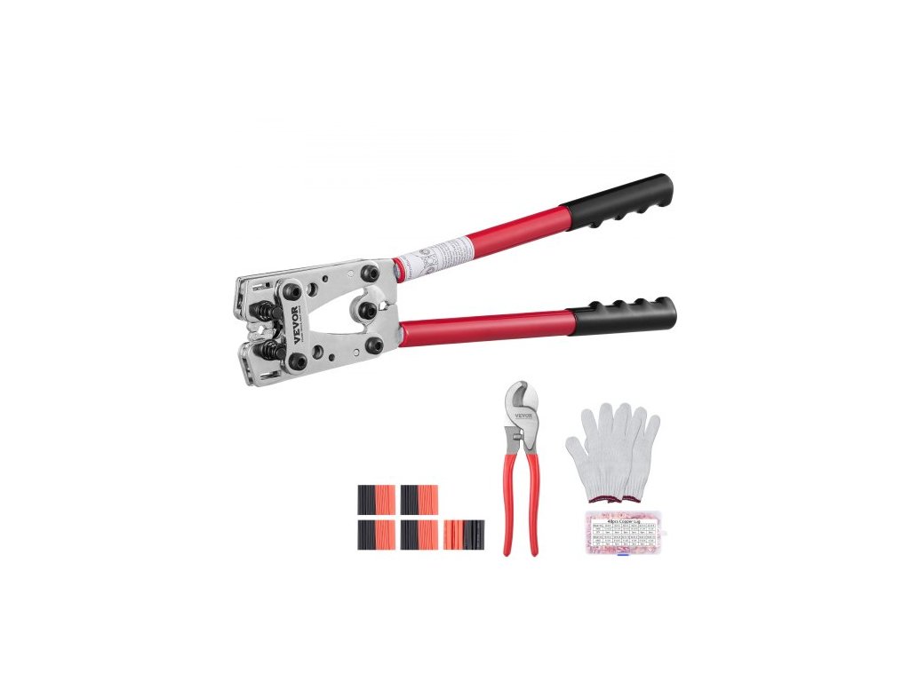 Krimpovací nástroj na bateriové kabelové koncovky , 10-1/0AWG s řezačkou kabelů a 48 ks měděných oběžných konců, krimpovací matrice pro 6 velikostí vodičů a 100 ks smršťovacích bužírek, pro vysoce odolná kabelová oka