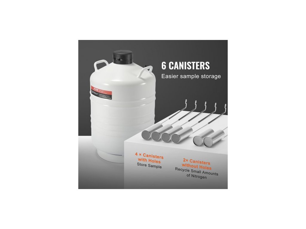 Kryogenní nádrž na kapalný dusík , 30l nádoba na kapalný dusík z hliníkové slitiny, Dewarova nádoba na LN2 s 6 kanystry a přepravní taškou s popruhy, kryogenní nádrž pro kosmetický průmysl, konzervace spermatu, vědecké použití