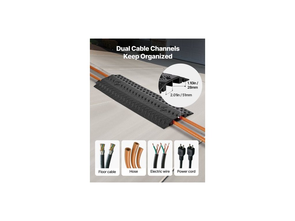 Kryt kabelu Drop Over, nosnost 7 938 kg/náprava, odolný ochranný kryt kabelové hadice, kryt podlahového kabelu, pro oblasti s vysokou frekvencí chůze, pro vnitřní i venkovní použití, pro domácnost, kancelář, sklad, balení po 3 kusech
