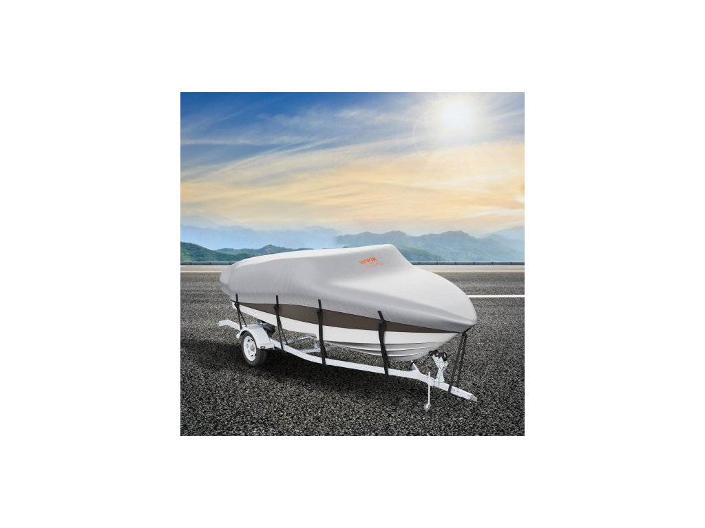 Kryt lodi , 5180-5790 mm, vodotěsný kryt lodi na přívěs, 600D PU Oxford námořní kvality, s krytem motoru a přezkami, pro V-trup, Tri-hull, Fish Ski Boat, Runabout, Bass Boat, šedý
