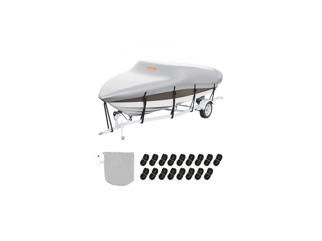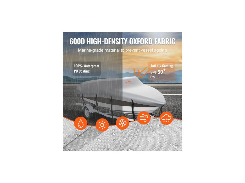 Kryt lodi , 7010-7310 mm na přívěs, vodotěsný kryt lodi, 600D námořní PU Oxford, s krytem motoru a přezkami, pro V-trup, Tri-trup, rybářské lodě, runabouty, lodě na lov basů, šedý