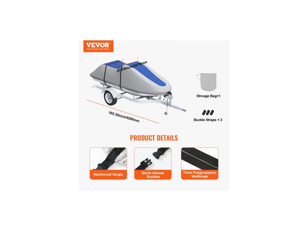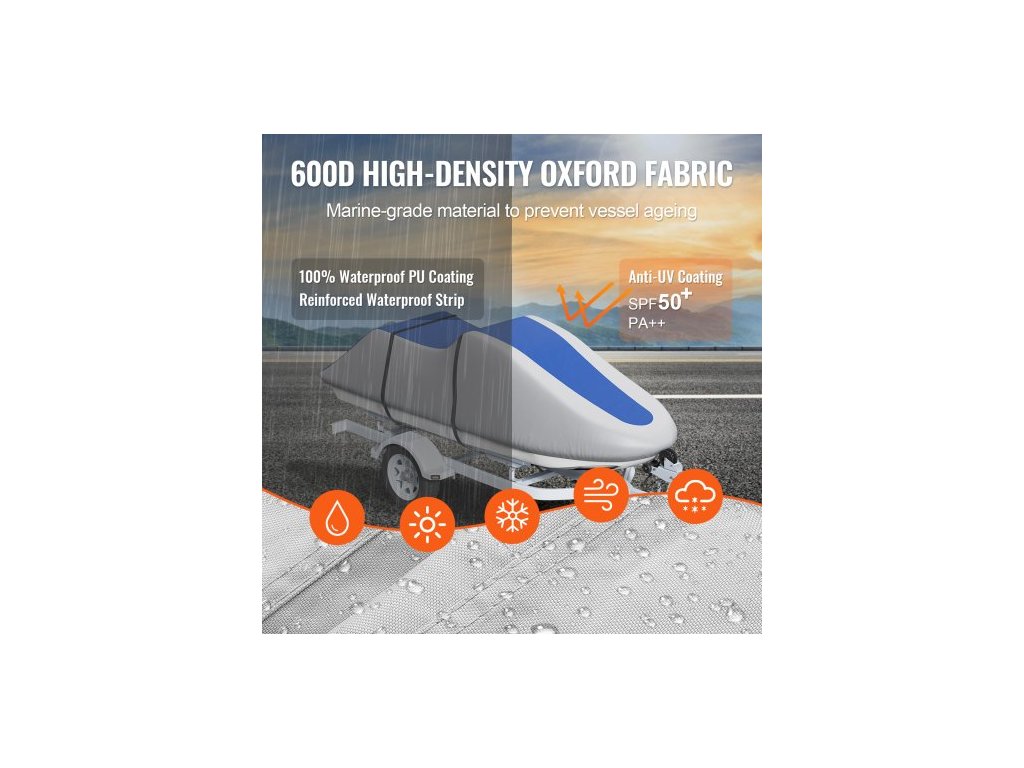 Kryt na vodní skútr , 3200-3420 mm, vodotěsný kryt z plastu, odolný 600D námořní PU oxfordský materiál, UV odolný kryt Seadoo s přezkami, kryty na vodní skútry, šedo-modrý
