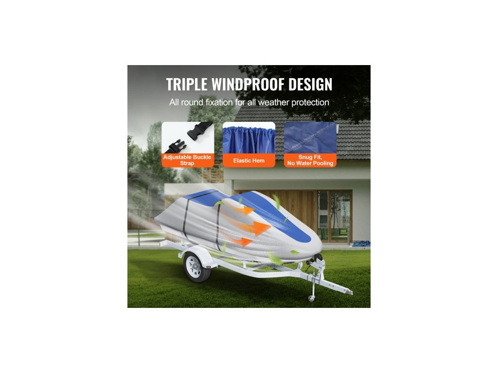 Kryt na vodní skútr , 3200-3420 mm, vodotěsný kryt PWC, odolný proti opotřebení z PU oxfordské tkaniny námořní kvality 600D, UV odolný kryt Seadoo s přezkami, kryty na vodní skútry, šedo-modrý