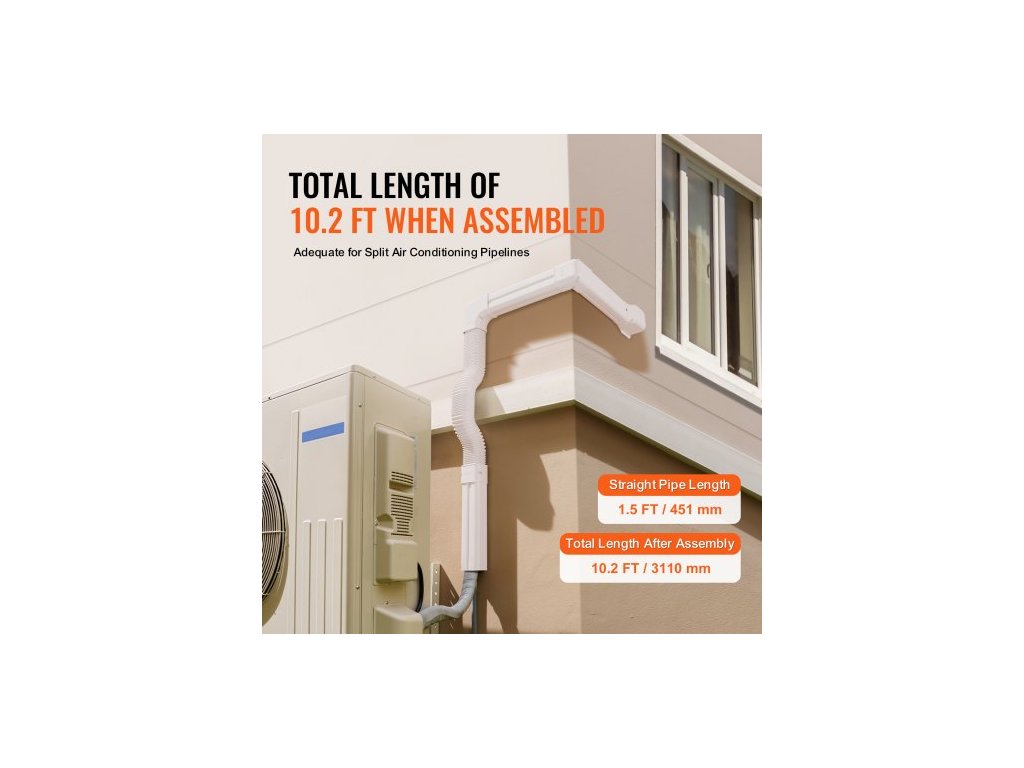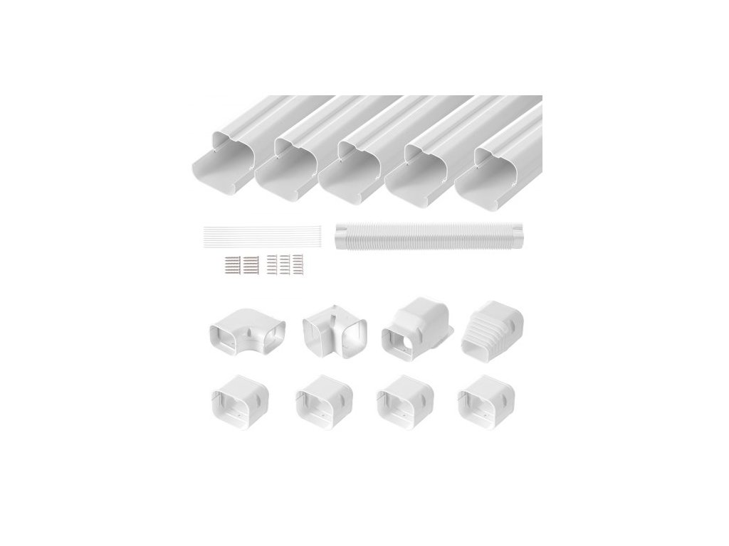 Kryt Mini Split Line Set 76,2 mm Š 3110 mm D, Dekorativní PVC kryt potrubí pro klimatizaci s 5 rovnými kanály a kompletními komponenty, snadná instalace, natíratelný pro tepelná čerpadla, bílý