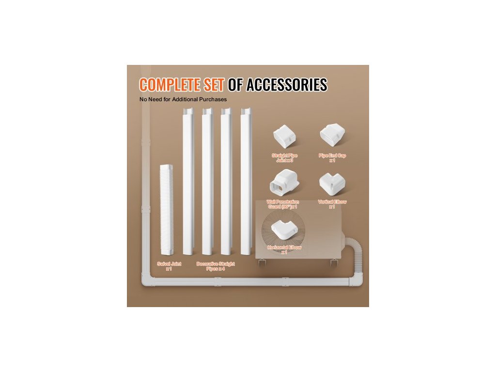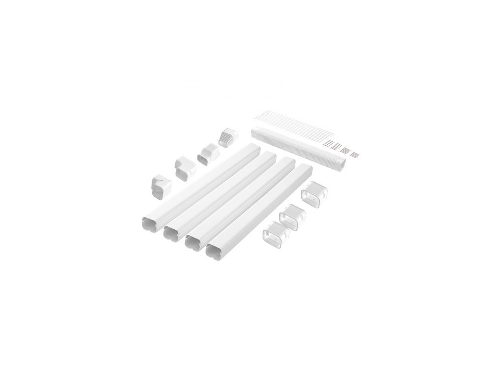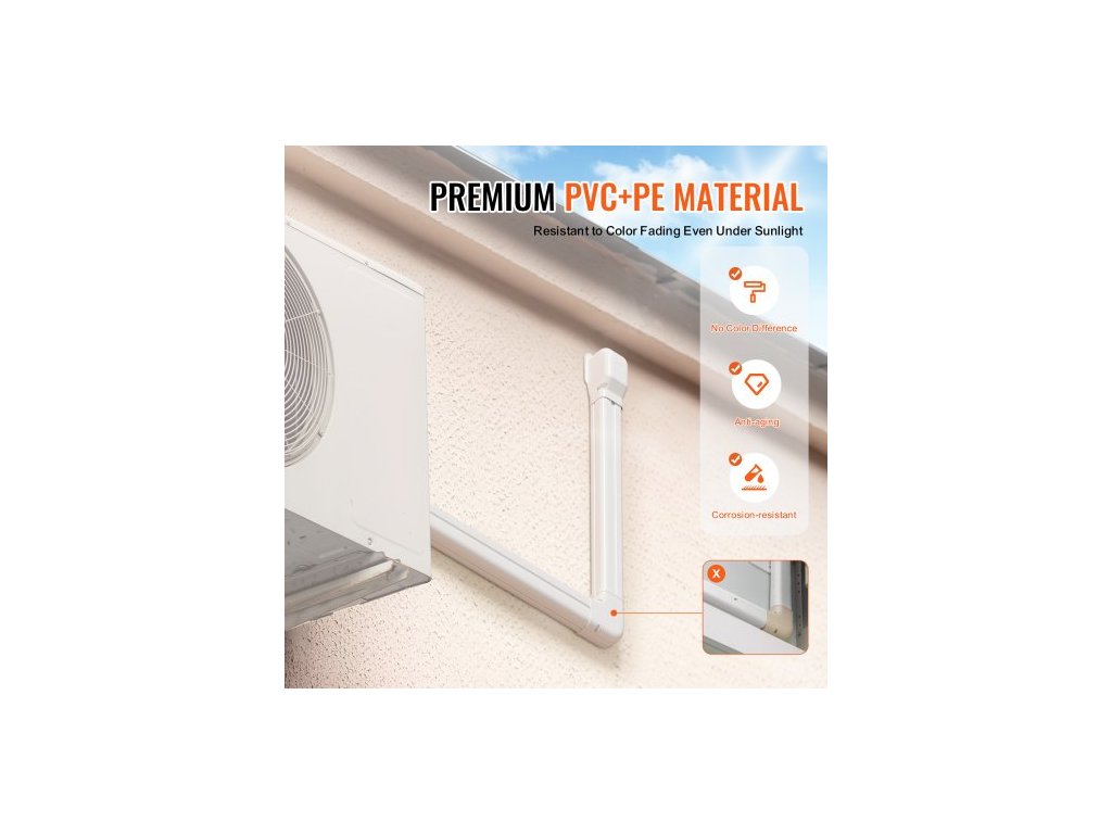 Kryt Mini Split Line Set 76,2 mm Š 4830 mm D, Dekorativní PVC kryt potrubí pro klimatizaci se 4 rovnými potrubími a kompletními komponenty, snadná instalace, natíratelný pro tepelná čerpadla, bílý