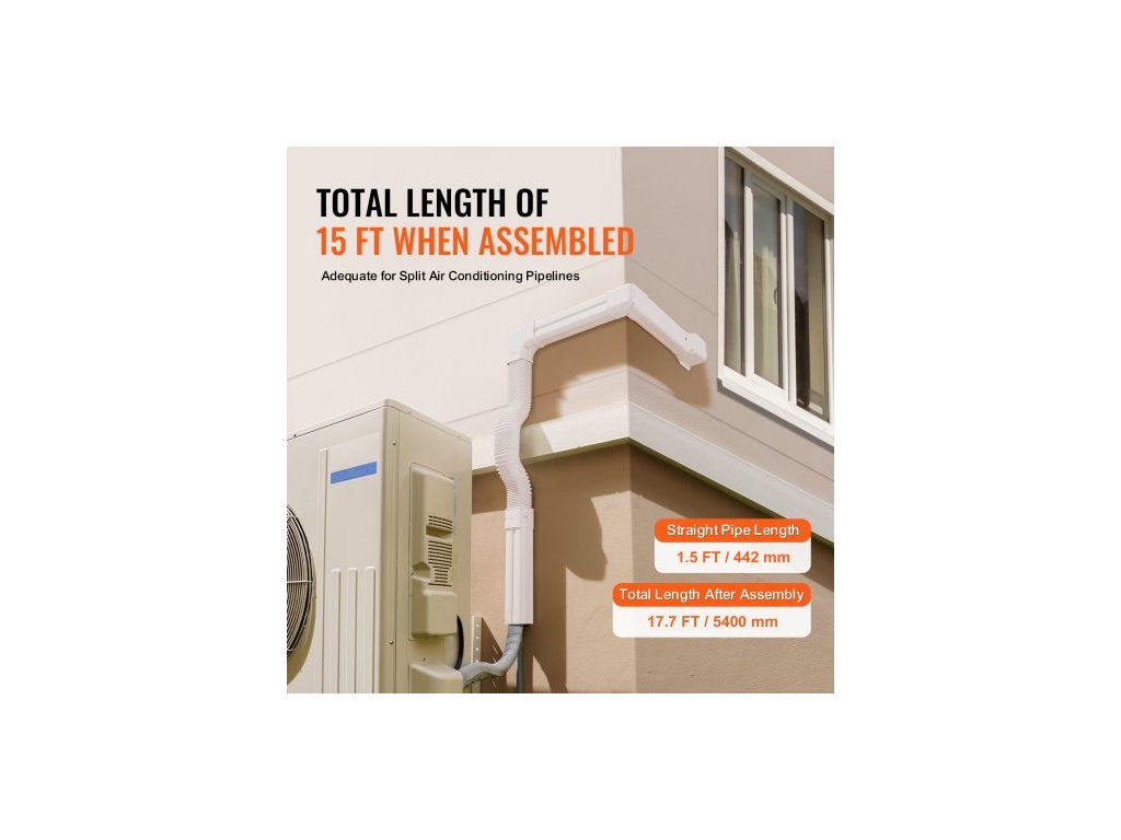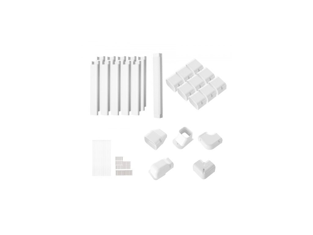 Kryt Mini Split Line Set 76,2 mm Š 5400 mm D, Dekorativní PVC kryt potrubí pro klimatizaci s 10 rovnými potrubími a kompletními komponenty, snadná instalace, natíratelný pro tepelná čerpadla, bílý