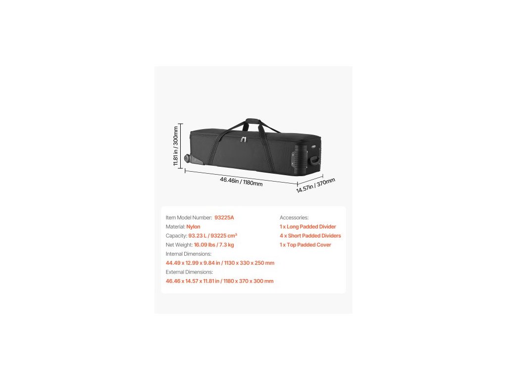 Kufr na kolečkách pro studiové vybavení 118x37x30cm (46,46 x 14,57 x 11,81 palce)
