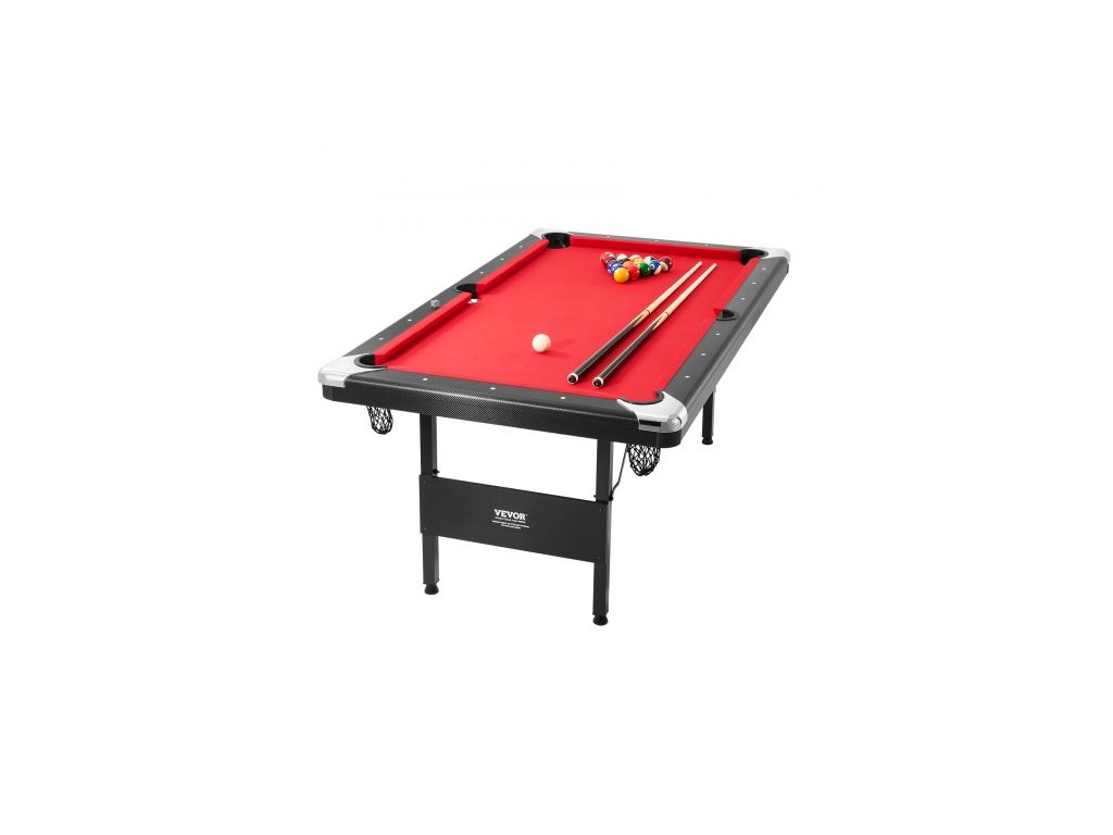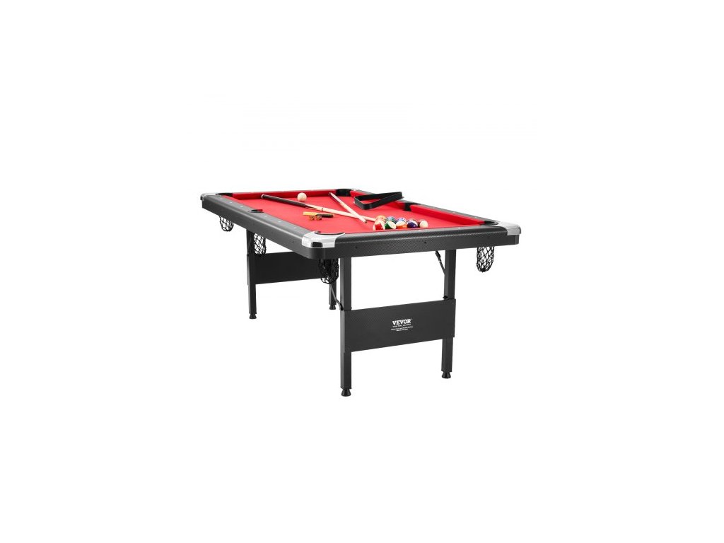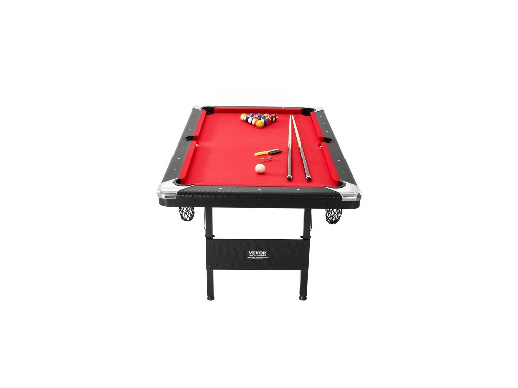 Kulečníkový stůl , 192 cm kulečníkový stůl, přenosný skládací stůl šetří místo, sada kulečníkových stolů obsahuje koule, tága, křídy a štětec, černý s červeným ubrusem, ideální pro rodinné herny, děti i dospělé
