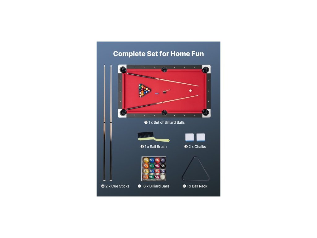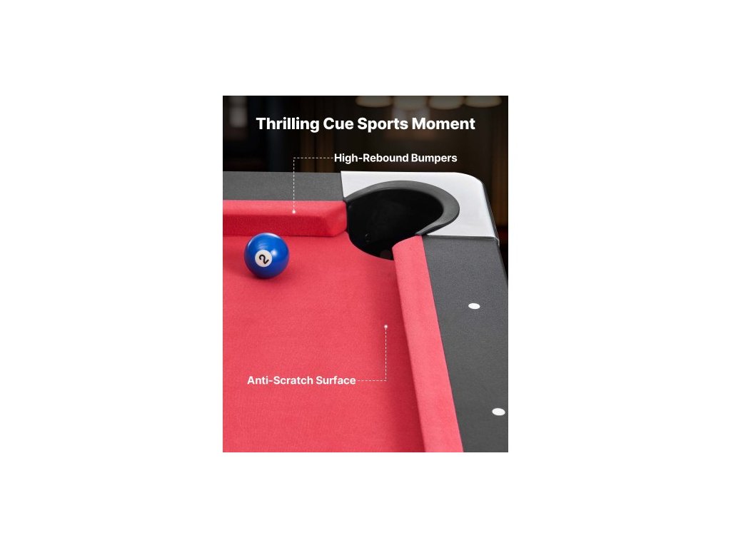 Kulečníkový stůl , přenosné kulečníkové stoly 183 cm, stabilní herní stůl s nastavitelnými nohami, sada obsahuje kouli, tágo, stojan, křídu a štětec, černý s červeným hadříkem, pro rodinné použití, rekreační místnost