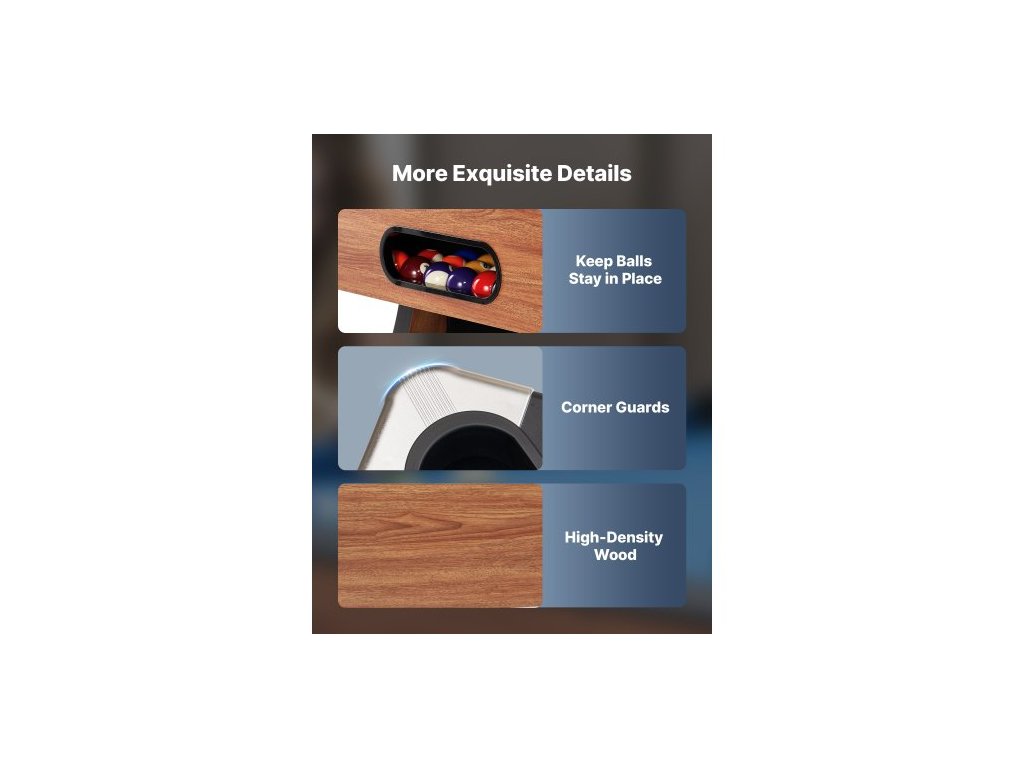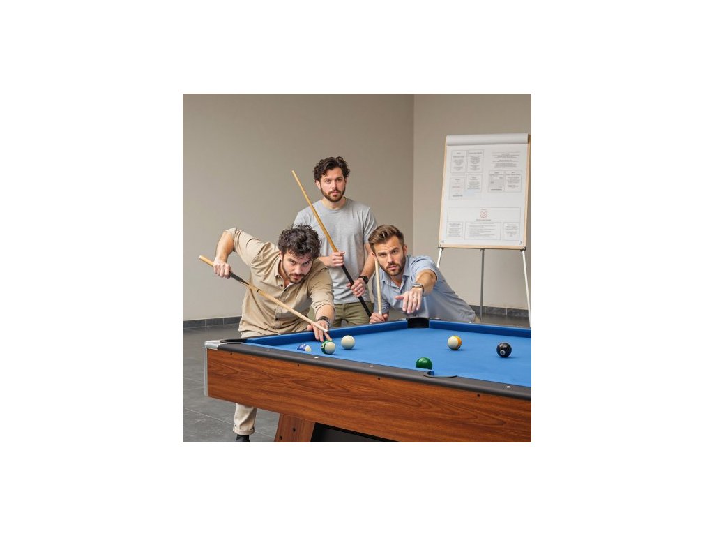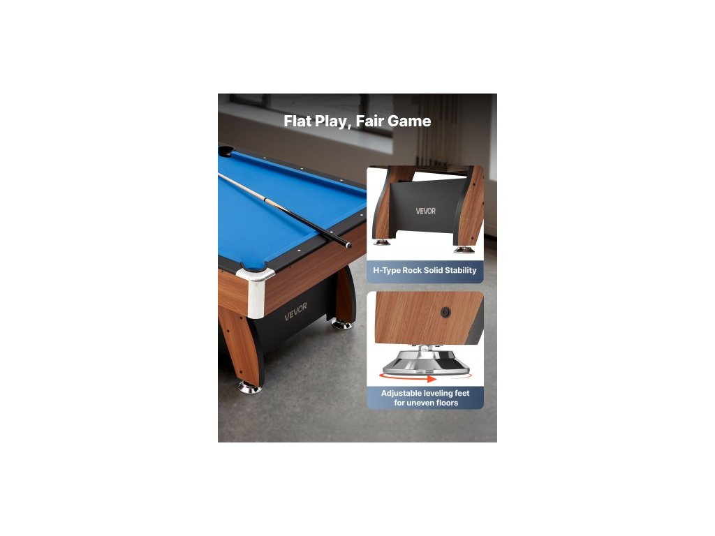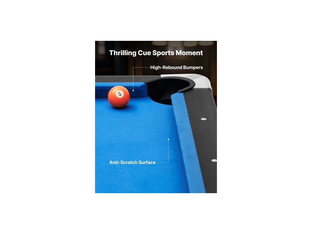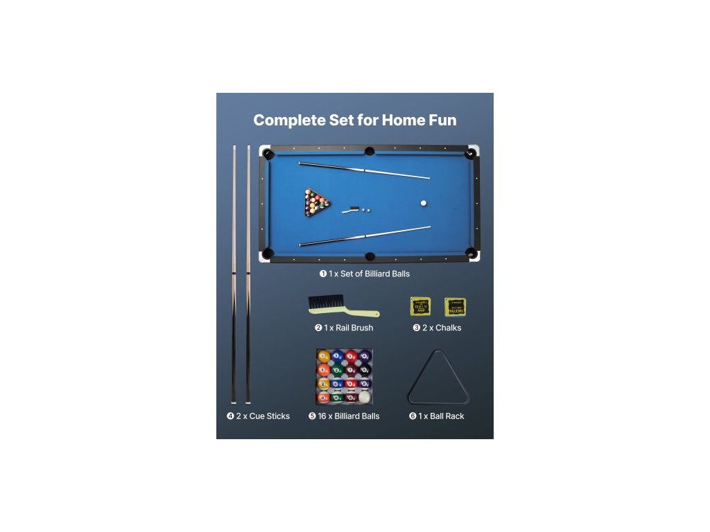 Kulečníkový stůl , přenosné kulečníkové stoly o průměru 244 cm s dřevěnou povrchovou úpravou, moderní herní stůl s nastavitelnými nohami, kompletní sada obsahuje koule, tága, stojan, křídu a štětec, modré plátno, pro rodinné použití, rekreační místnost