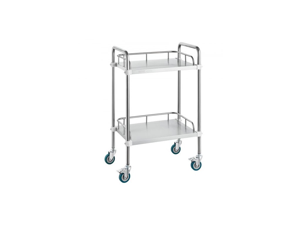 Laboratorní vozík , 2policový vozík z nerezové oceli, laboratorní servírovací vozík s otočnými kolečky, zubní vozík pro kliniky, laboratoře, nemocnice, salony, 385 x 548 x 865 mm