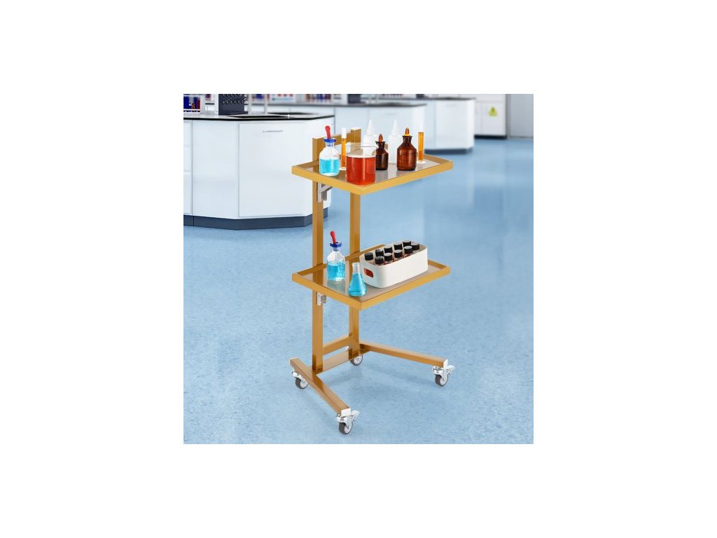 Laboratorní vozíky z nerezové oceli se 2 úrovněmi, Laboratorní vozík se 2 tácy, Mobilní lékařský vozík se 4 tichými kolečky, Laboratorní vozík na kolečkách pro laboratoř, kliniku, nemocnici, salon, Zlatý