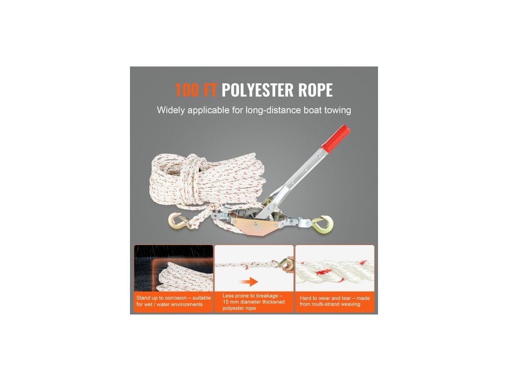 Lanový stahovák , tažná kapacita 3/4 tuny (750 kg), s délkou 30,48 m a průměrem 1,52 cm. Lano, 2 háky, naviják Come Along, vysoce odolný ráčnový stahovák pro přesun lodí, zajištění předmětů a přepravu klád