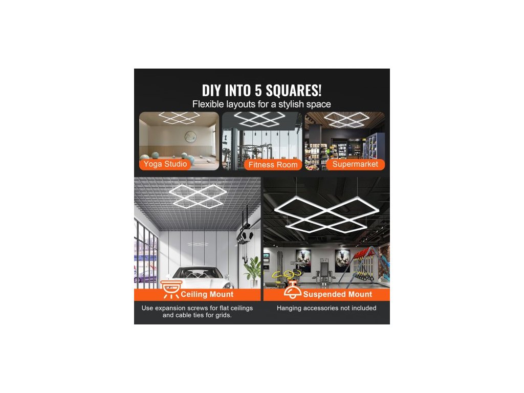 LED garážová světla 22000LM, 6500K, 5 mřížkových systémů, čtvercová stropní světla do garáže, DIY chladně bílá, detailní osvětlení auta, garážové osvětlení, super jasné dílenské světlo pro sklep, sklad, autoservis, kosmetiku a dílnu