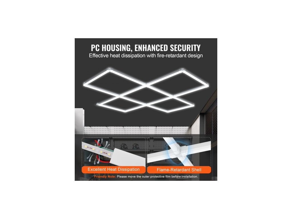 Teplota chromatičnosti: 6500K, Jas: 22000LM, Číslo modelu položky: ZT1012, CRI: >=84, Rozměry produktu: 66,7 x 66,7 x 1,7 palce (1695 x 1695 x 42 mm), Čistá hmotnost: 4,89 lbs/2,2 kg, Množství světelných trubic: 16 ks