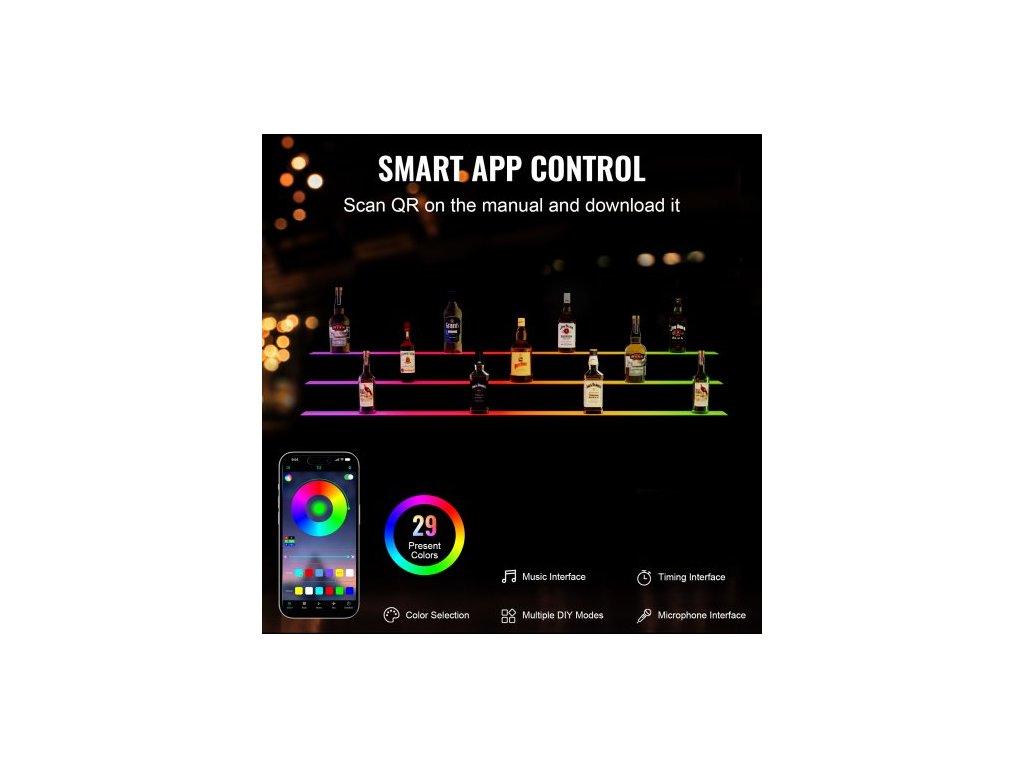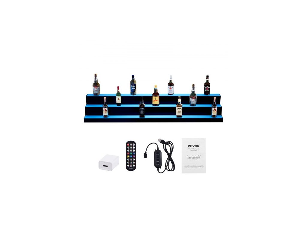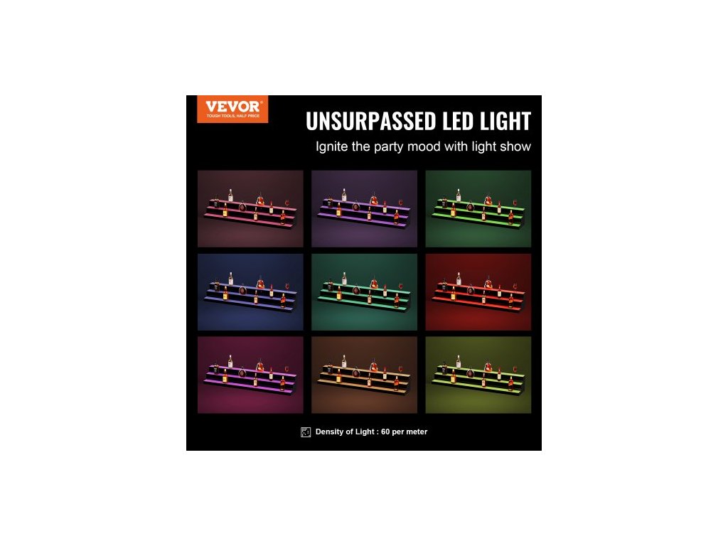 LED podsvícený stojan na lahve s alkoholem, 152,4 cm, 3stupňové ovládání, vícebarevné LED osvětlení, RF dálkové ovládání, RF dálkové ovládání, bezchybné ovládání aplikací, výběr způsobu napájení, průhledný akryl, všestranné použití, délka napájecího kabelu: 1 m, číslo modelu: ok-3-60, rozměry: 1522 x 300 x 250 mm ±5 mm, materiál: prémiový akryl, způsoby ovládání: RF dálkové ovládání a ovládání aplikací, dosah ovládání: 5–8 m, hmotnost bez vad: 9,88 kg