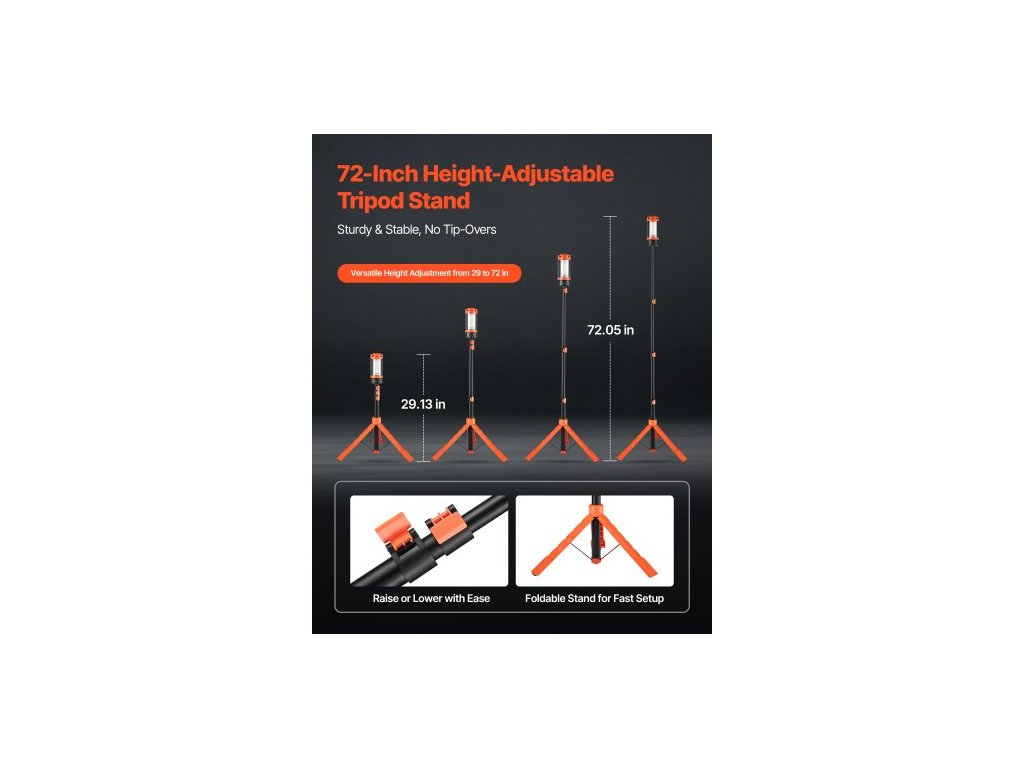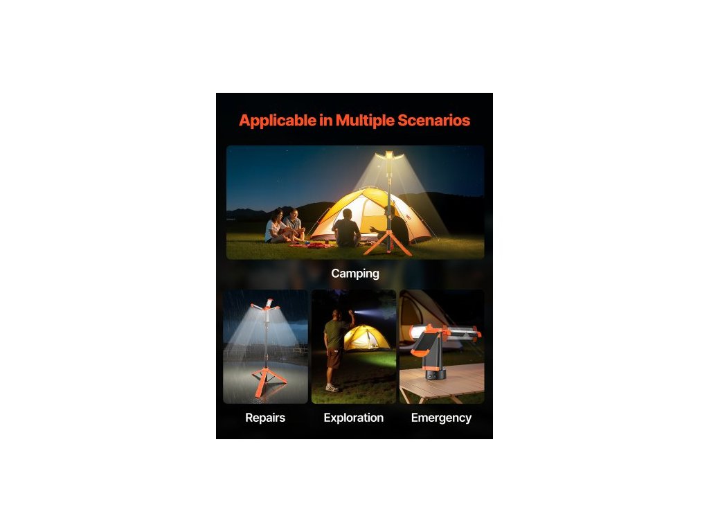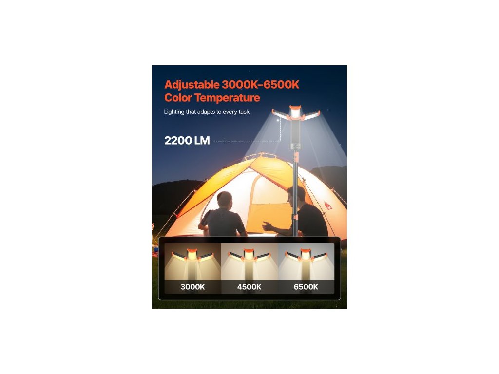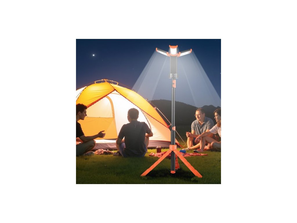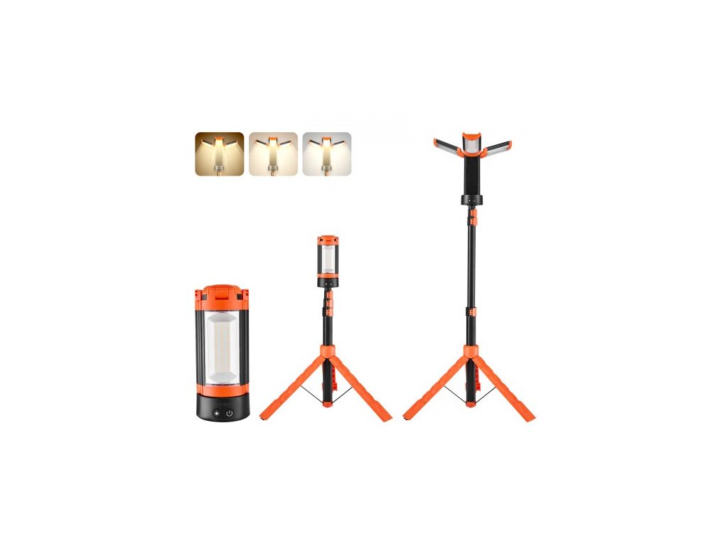 LED pracovní světlo se stojanem, 8Ah, dobíjecí bezdrátové kempingové světlo, se 3 hlavami lampy, odnímatelným stativem, 2200 lumenů, stmívatelné, přenosné stavební osvětlení pro staveniště.