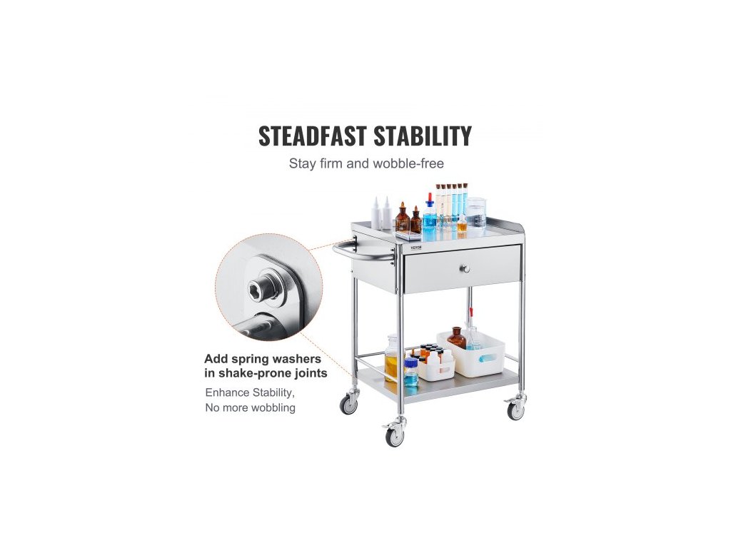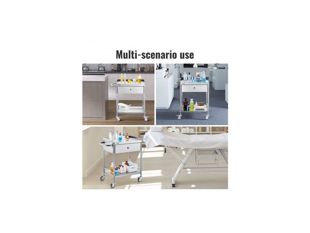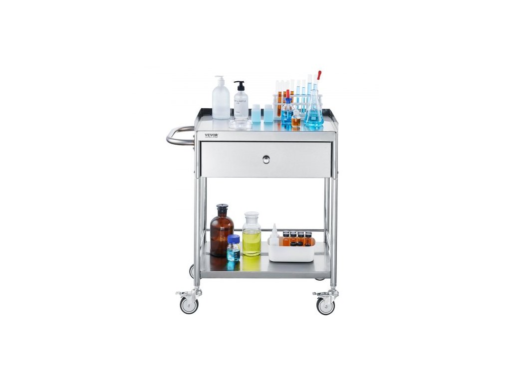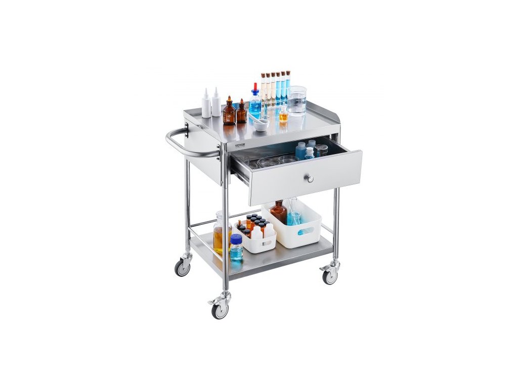 Lékařský vozík , 2vrstvý vozík z nerezové oceli, nosnost 99,8 kg, laboratorní vozík s tichými kolečky otočnými o 360° a zásuvkou pro laboratoř, kliniku, kuchyň, salon