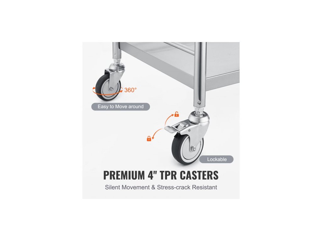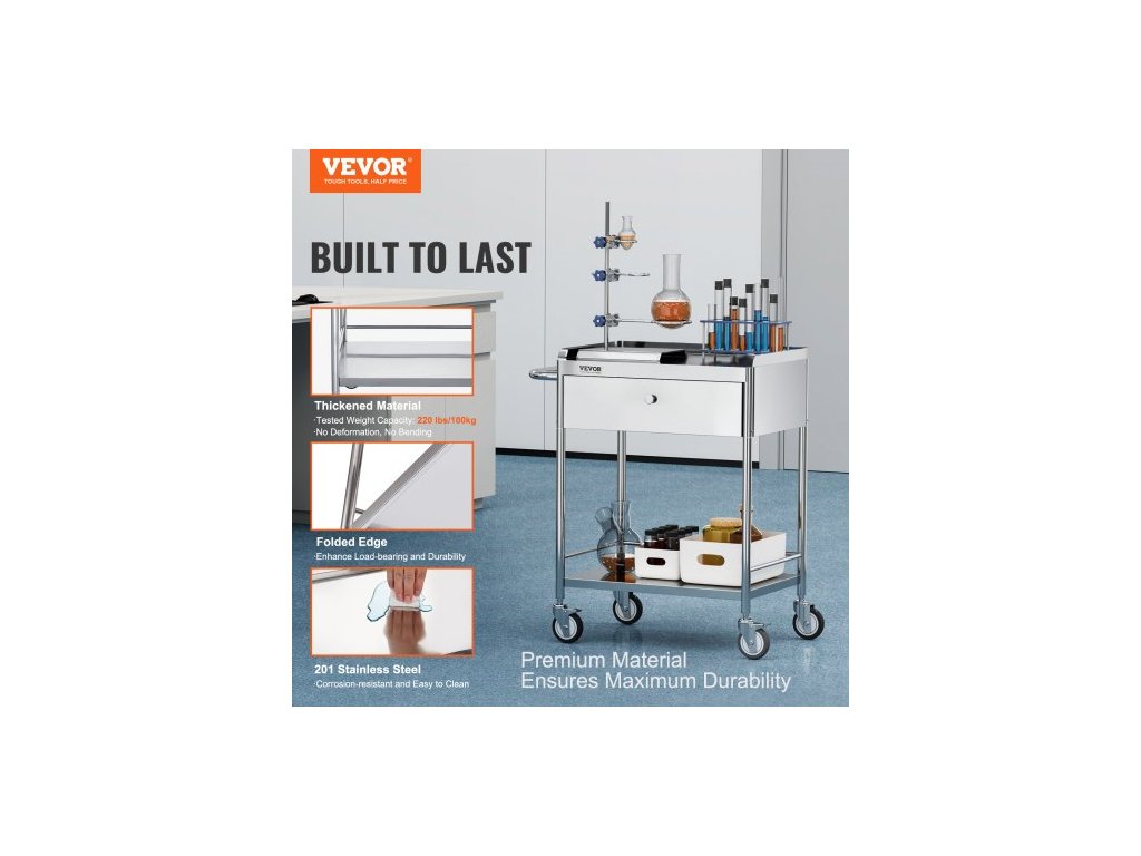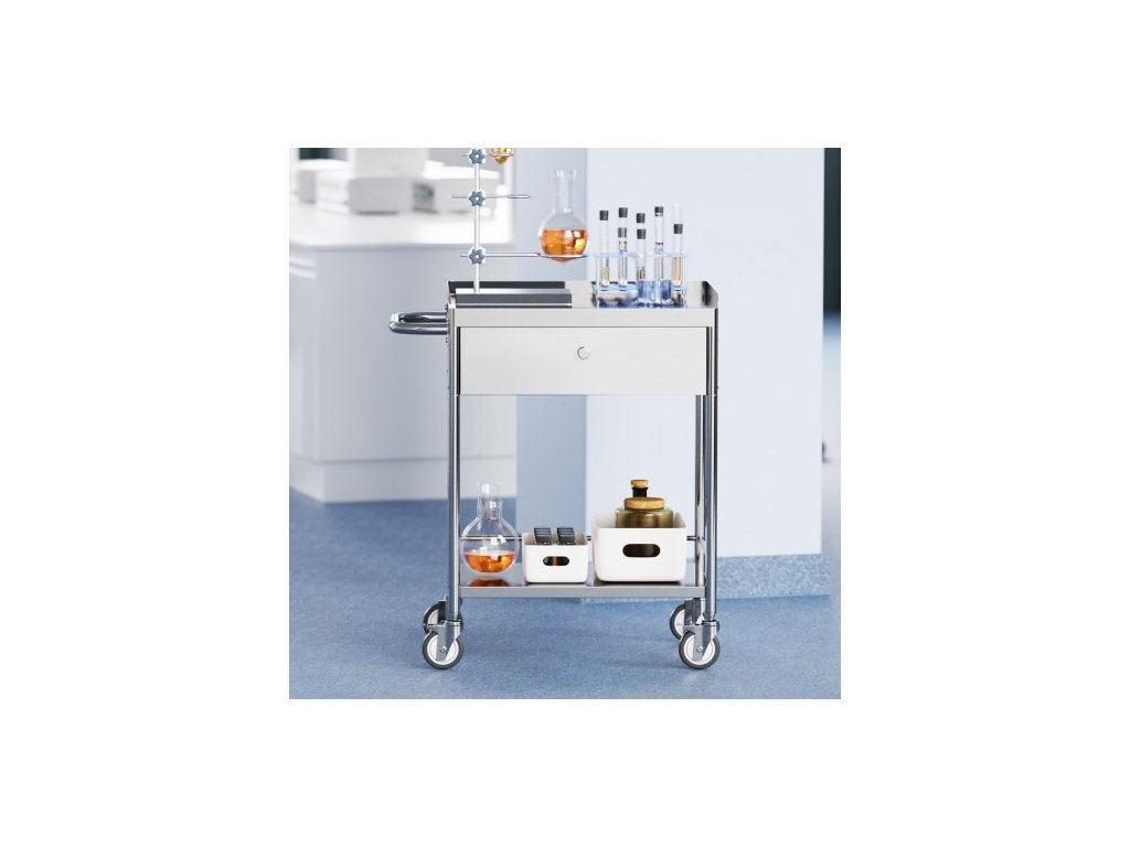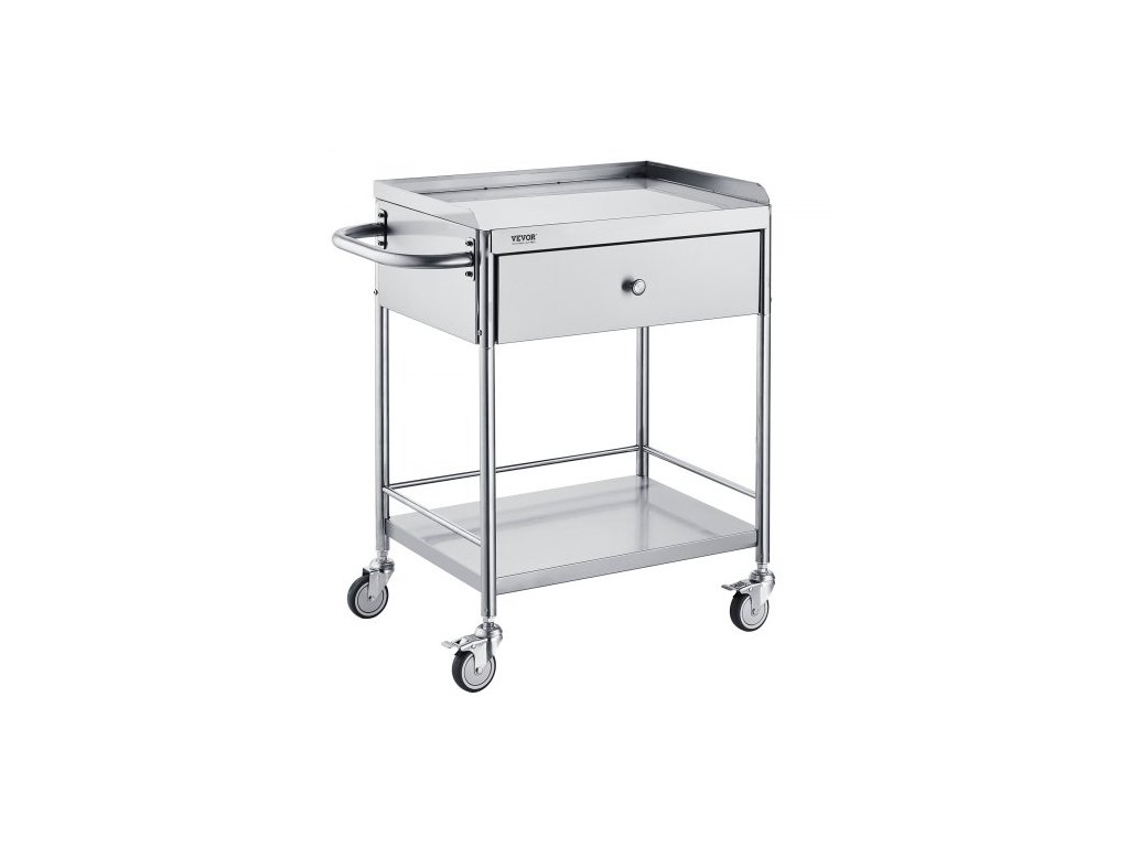Lékařský vozík , 2vrstvý vozík z nerezové oceli, nosnost 99,8 kg, laboratorní vozík s tichými kolečky otočnými o 360° a zásuvkou pro laboratoř, kliniku, kuchyň, salon