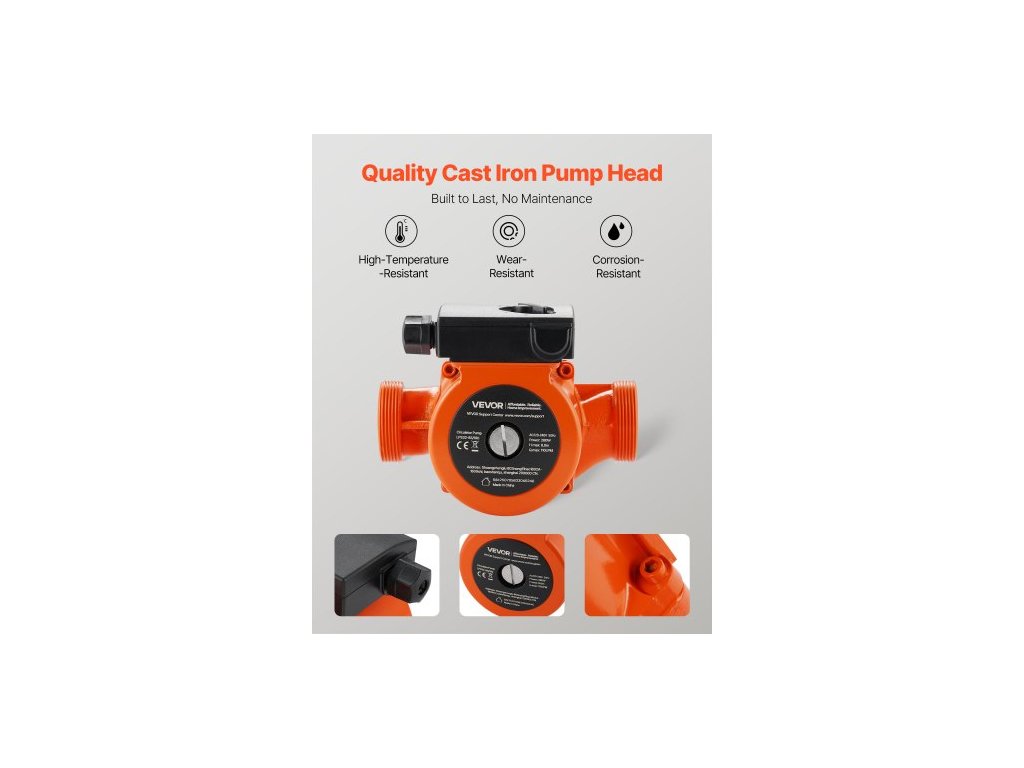 Litinové oběhové čerpadlo LPS32-8S/180, 3/8 HP, 220-240V 110 l/min, recirkulační oběhové čerpadlo na teplou vodu, závitové připojení, 3stupňové nastavení, tichý provoz, pro systém vytápění domácností