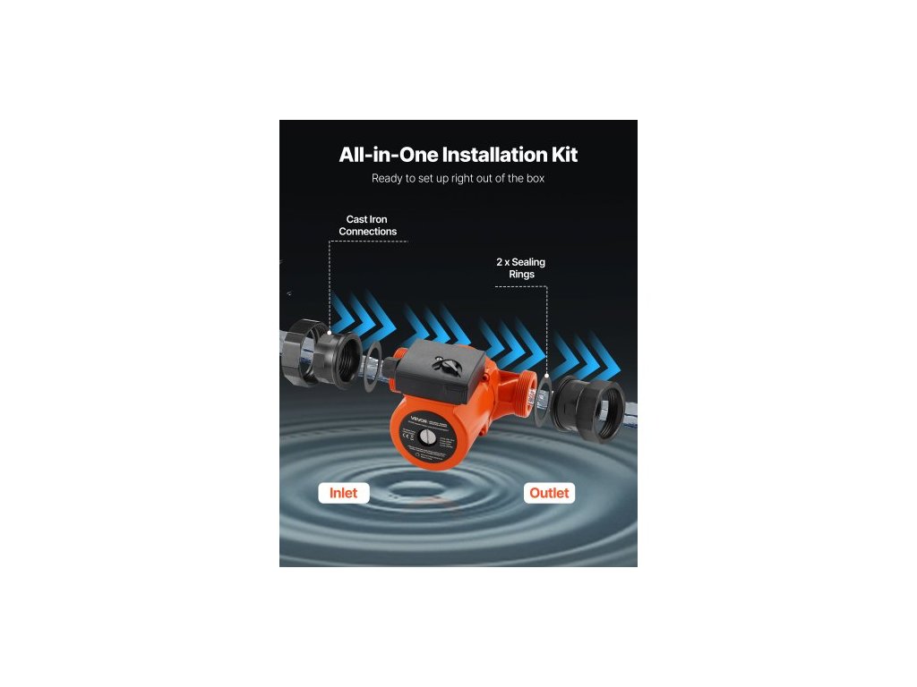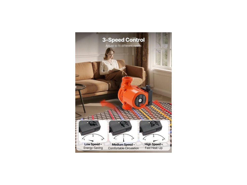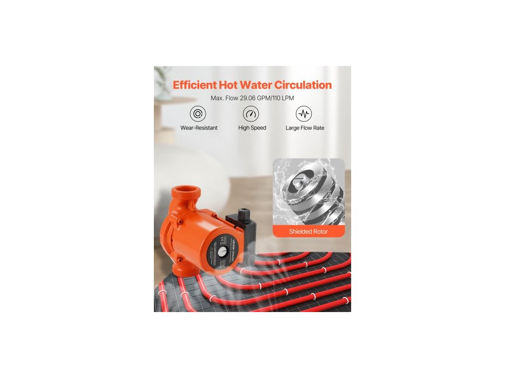 Litinové oběhové čerpadlo LPS32-8S/180, 3/8 HP, 220-240V 110 l/min, recirkulační oběhové čerpadlo teplé vody, závitové připojení, 3stupňové nastavení, tichý provoz, pro systém vytápění domácností
