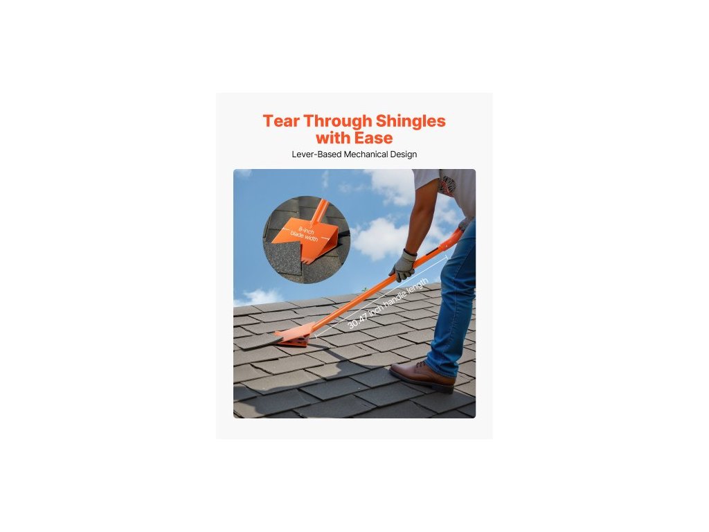 Lopata na šindele , balení 2 kusů, rozrývač šindelů s rukojetí D-Grip, vysoce tvrdá ocel 45# a lehký nástroj pro snadné odtrhávání střešních krytin a hřebíků, ideální pro komerční i rezidenční použití, oranžový rozrývač šindelů s rukojetí D-Grip, pohodlná rukojeť, vysoká nosnost, robustní a odolný, odolný vůči povětrnostním vlivům, dobře zabalený, chráněný, typ: typ D, tloušťka čepele: 0,1 palce / 2,6 mm, barva: oranžová, čistá hmotnost (celkem): 12,79 lbs / 5,8 kg, číslo modelu položky: VOLD-SK-003, povrchová úprava: kalená + práškově lakovaná, maximální nosnost: 88,18 lbs / 40 kg, množství: 2 ks, výška čepele: 46 palců / 1168 mm, hlavní materiál: ocel, rozměry položky (na kus): 46,1 x 8 x 4,33 palce / 1170 x 203 x 110 mm, šířka čepele: 8 palců / 203 mm