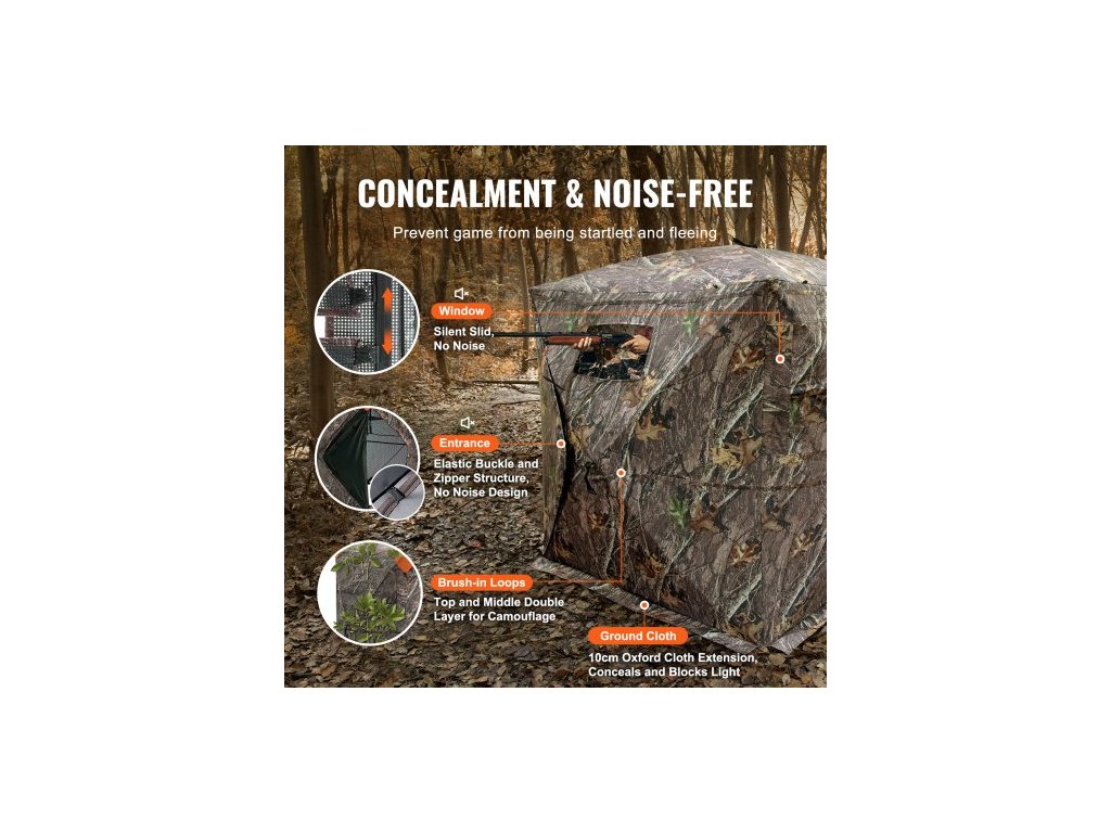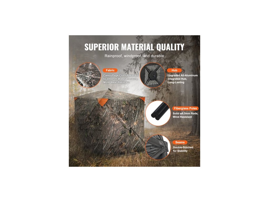 Číslo modelu položky: ZHS5567-1,Rozměry: 55,5" x 55,5" x 66,9" / 1410 x 1410 x 1700 mm,Čistá hmotnost: 13,1 lbs / 5,94 kg,Hlavní materiál: Maskovací látka 150D