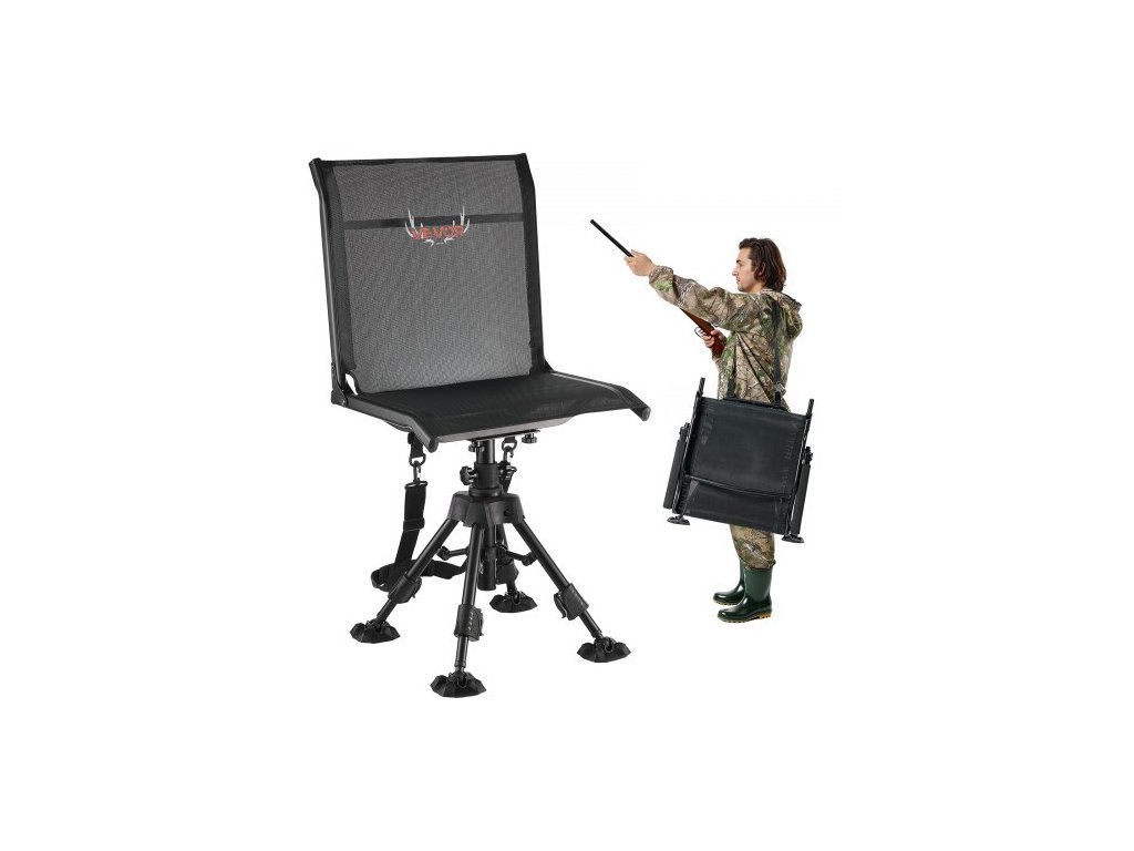Lovecká židle , tiché otočení o 360°, skládací přenosná roletová židle, odolná ocelová konstrukce s otočnými nohami proti propadnutí, výškově nastavitelná, nosnost 158 kg pro rybaření a kempování