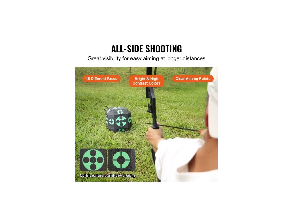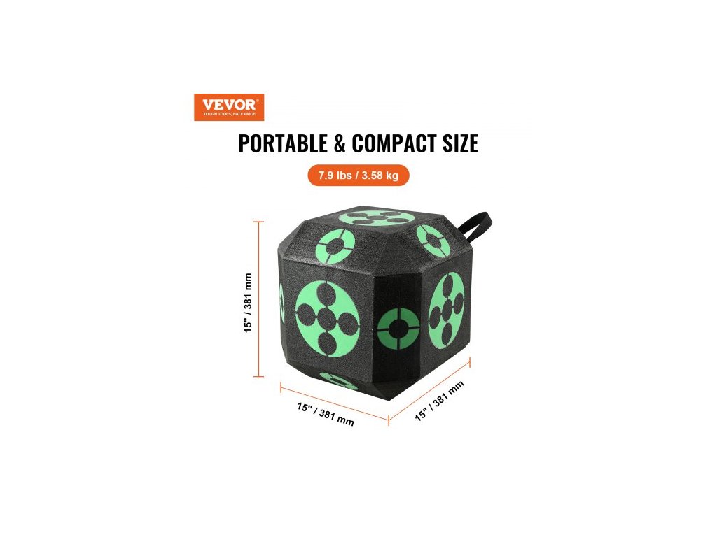 Lukostřelecký terč , terč na šípy ze všech stran 15"x15", venkovní přenosný lukostřelecký terč s rukojetí pro přenášení, snadné vyjímání šípů, skvělá viditelnost, nízká hmotnost, snadná přeprava, černý