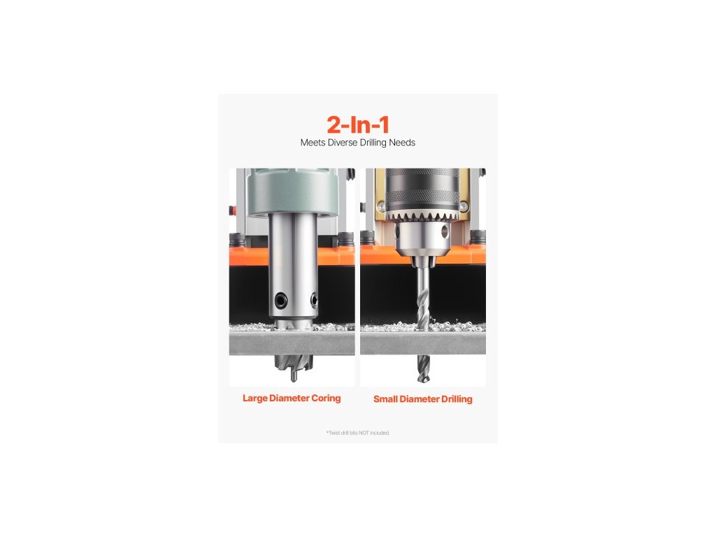Plynulá rychlost: 0–500 ot./min, max. průměr vrtání (spirálový vrták): 0,63 palce / 16 mm, max. průměr vrtání (jádrový vrták): 2 palce / 50 mm, hmotnost výrobku: 41,9 lbs / 19,0 kg, magnetická síla: 2922 lbf / 13 000 N, výkon: 1550 W 220 V 60 Hz, max. hloubka vrtání: 2 palce / 50 mm, max. Hloubka vrtání (spirálový vrták): 100 mm, Max. posuv: 210 mm, Rozměry výrobku: 320 × 140 × 430 mm