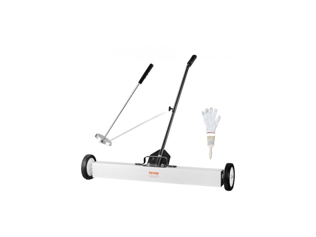 Magnetický zametač 36 palců s kolečky, nosnost 55 liber, s teleskopickým magnetickým sběrným nástrojem, nastavitelná rukojeť, magnetický sběrný zametač na sbírání hřebíků a šroubů, pro dílnu, garáž, zahradu