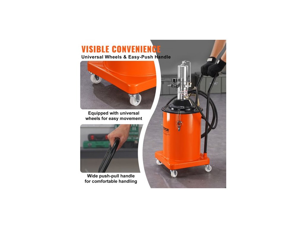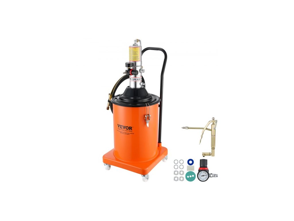 Specifikace kol: 2 palce/50,8 mm,Materiál válce: DC01,Materiál čerpadla: Tlakově litý hliník,Provozní teplota: -4°F až 212°F/-20°C až 100°C,Objem válce s mazivem: 5 galonů/20 l,Číslo modelu položky: FF-08B-20L,Hmotnost výrobku: 27,4 lbs/12,4 kg,Počet kol: 4,Tlak přívodu vzduchu: 0,6–0,8 MPa, Vhodné typy maziva: Mazivo 0–3#, Velikost válce: ?10,98 x 13,58 x 0,03 palce/?279 x 345 x 0,7 mm, Velikost výrobku: 16,1 x 12,8 x 32,3 palce/410 x 325 x 820 mm