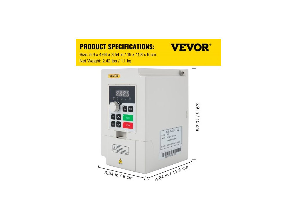 Vstupní fáze: 1 nebo 3 fáze, Výstupní fáze: 3 fáze, Vibrace: Pod 0,5 G, Výstupní proud: 0-14A, Vstupní napětí: 220V, Rozměry výrobku: 5,9 x 3,54 x 4,6 palce / 150 x 90 x 118 mm, Vstupní frekvence: 50/60 Hz, Výkon: 4 HP, Provozní teplota: -5 ~ 40 °C, Vlhkost: Relativní vlhkost 0–90 % (bez rosy), Model: H100-3S2-1B, Výstupní napětí: 0–220 V, Čistá hmotnost: 1,1 kg, Výkon: 3 kW, Vstupní proud: 0–14 A, Výstupní frekvence: 0–1000 Hz