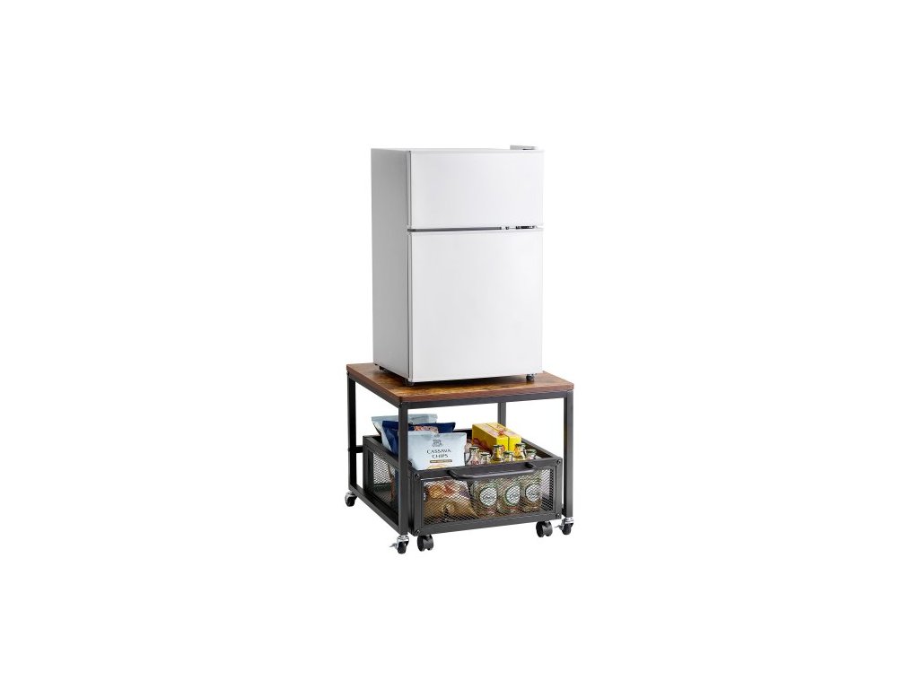 Mini lednicí stojan s úložným prostorem, mini lednicí stolek o hmotnosti 198 liber s pohyblivým úložným vozíkem a otočnými kolečky, stojan na nápojovou chladničku do kavárny, organizér na mini ledničku do domácí koleje, světle hnědý