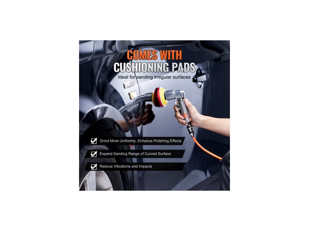 Mini vzduchová bruska, 2,5/5,1/7,6 cm orbitální vzduchová bruska, 15000 ot./min vysokorychlostní mini pneumatická bruska a leštička pro karosářské práce, sada 58 ks vzduchových brusek s vlnitými houbičkami, brusnými papíry a vlněnou podložkou