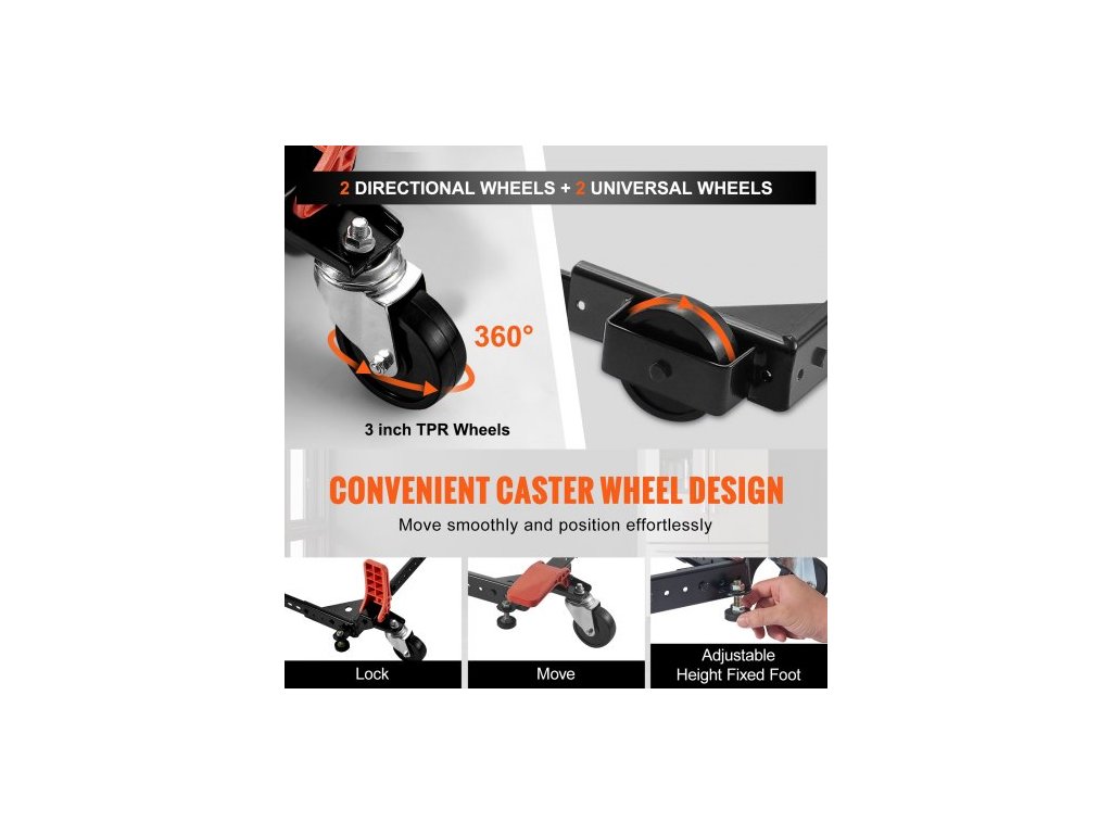 Nosnost: 226,8 kg, Číslo modelu položky: GZB88092, Hmotnost výrobku: 7,08 kg, Materiál: Uhlíková ocel Q235, Průměr koleček: 76 mm, Nastavitelná velikost: 304 x 304 mm až 914 x 914 mm mm, Počet koleček: 2 směrová kolečka + 2 otočná kolečka