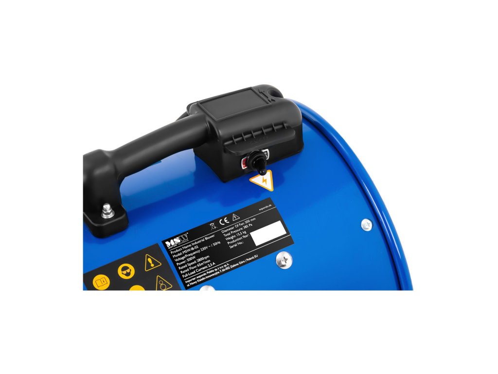Tento účinný axiální ventilátor pracuje s výkonem 500 W a s rychlostí 2 800 ot/min. Díky těmto hodnotám je možné prohnat tímto ventilátorem o průměru 300 mm až 3 900 m3/ vzduchu za hodinu. Pokud by se měl ventilátor používat delší dobu - například přes noc - chrání motor nastavitelná tepelná ochrana před případným přehřátím. Díky druhu ochrany IP54 je toto zařízení samozřejmě vhodné i pro použití ve vlhkém prostředí.