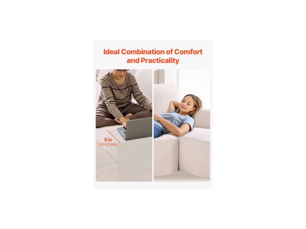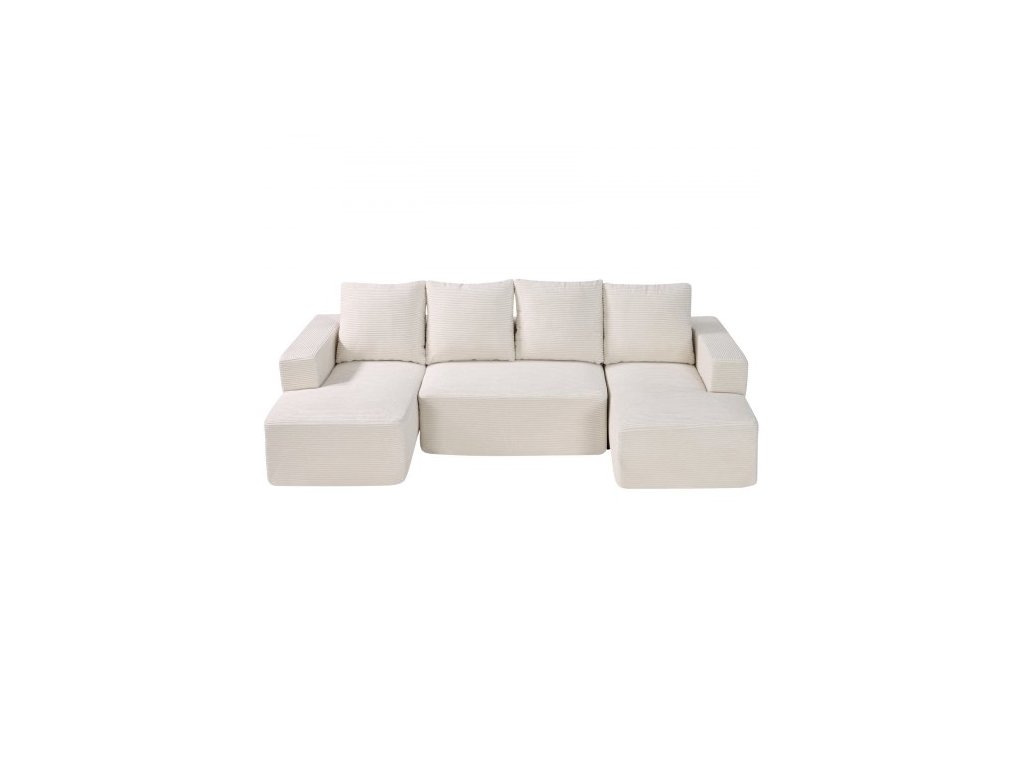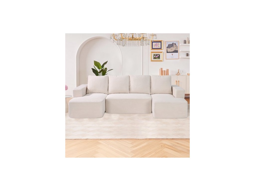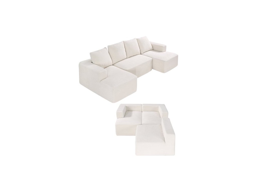 Modulární sekční pohovka , modulární pohovka ve tvaru U s lenoškou, sekční pohovka Cloud s vysokou houbou a hustotou, čalouněná manšestrová pohovka s polštářem do obývacího pokoje, ložnice, béžová